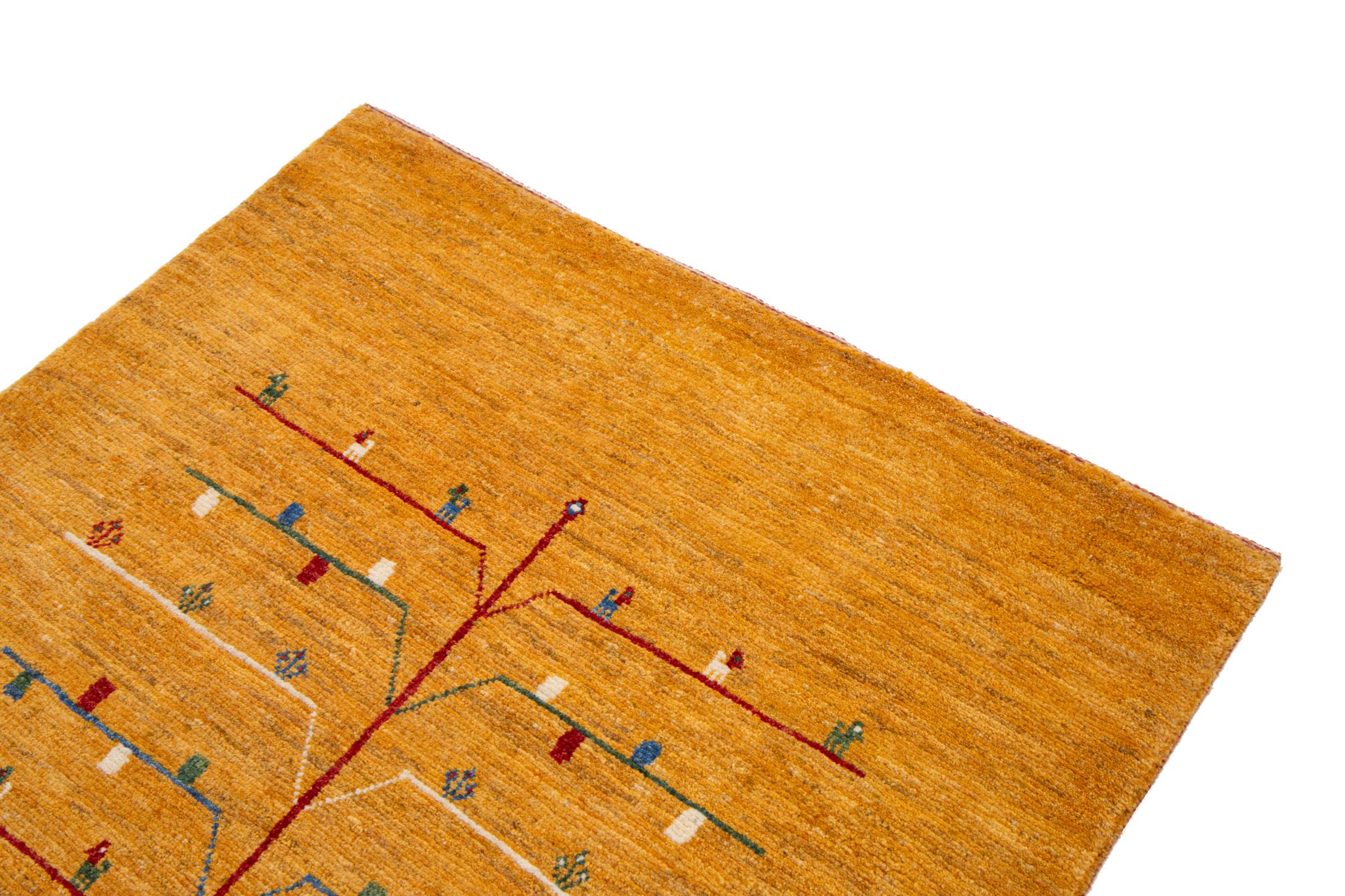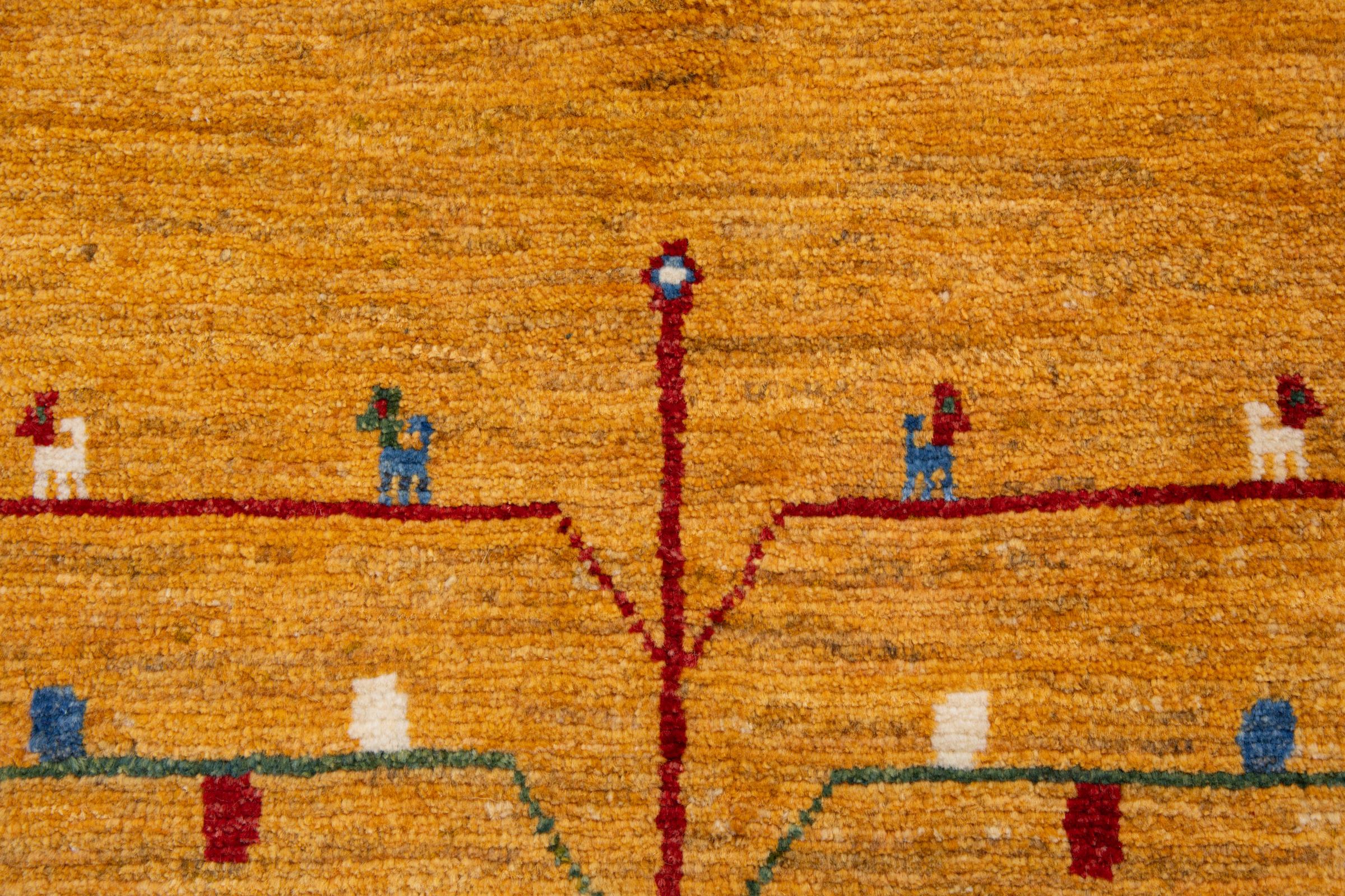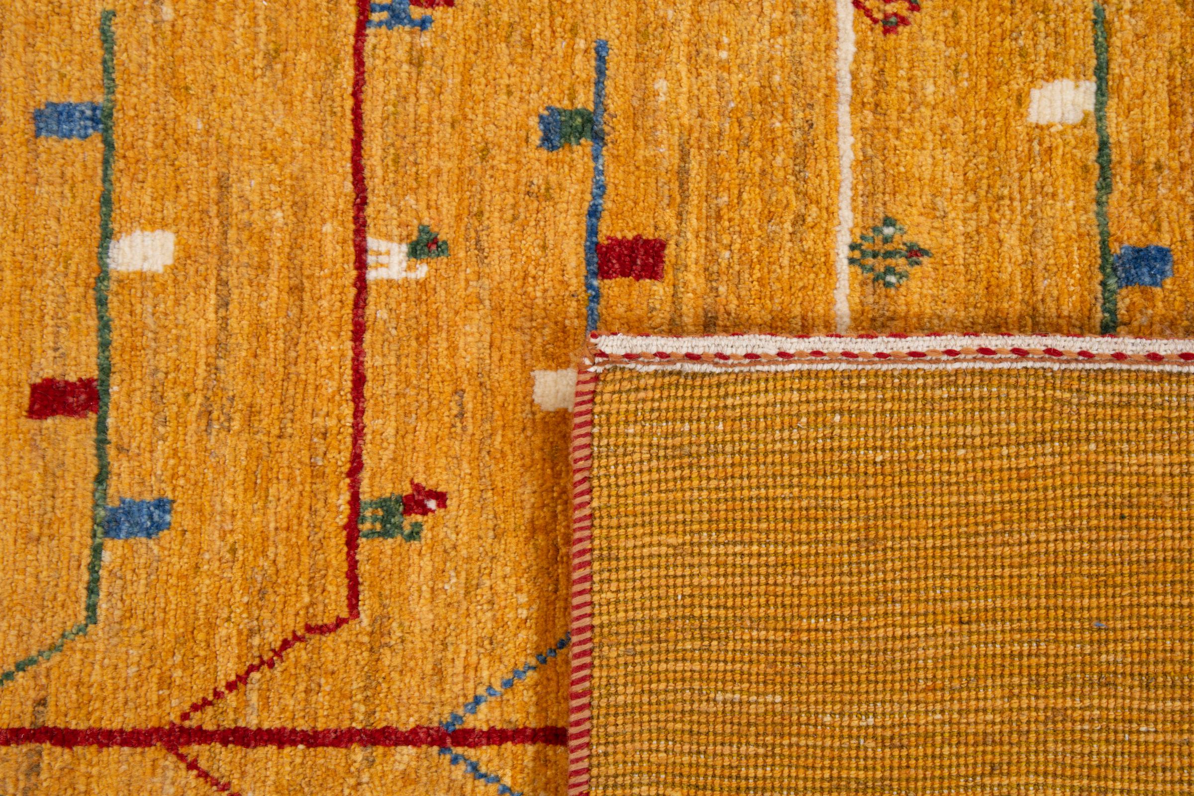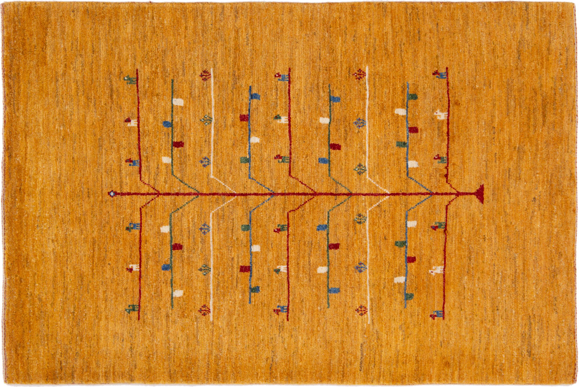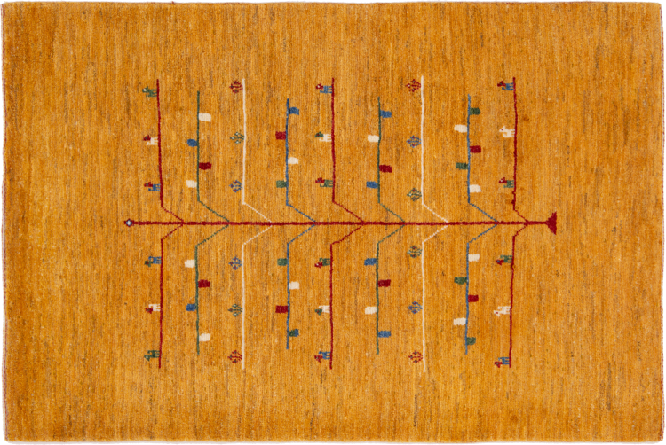 Dieser schöne Teppich ist ein persischer Gabbeh und gehört damit zu den hochwertigsten Gabbeh Teppichen. Die Teppiche werden von Nomaden oder Halbnomaden im Iran nach traditionellem Kunsthandwerk geknüpft. Die schlichten Motive und Muster sind meist aus der unmittelbaren Umgebung der Nomaden inspiriert. So sind beispielsweise Kamele, Bäume oder Büsche auf den traditionellen Teppichen zu finden. Perser Gabbeh Teppiche bestehen aus Wolle von lokal gehaltenen Schafherden. Die Wolle ist daher meist noch von Hand gesponnen. So verkörpert jeder dieser Orientteppiche einen einzigartigen Charakter jahrhundertealter Kultur.