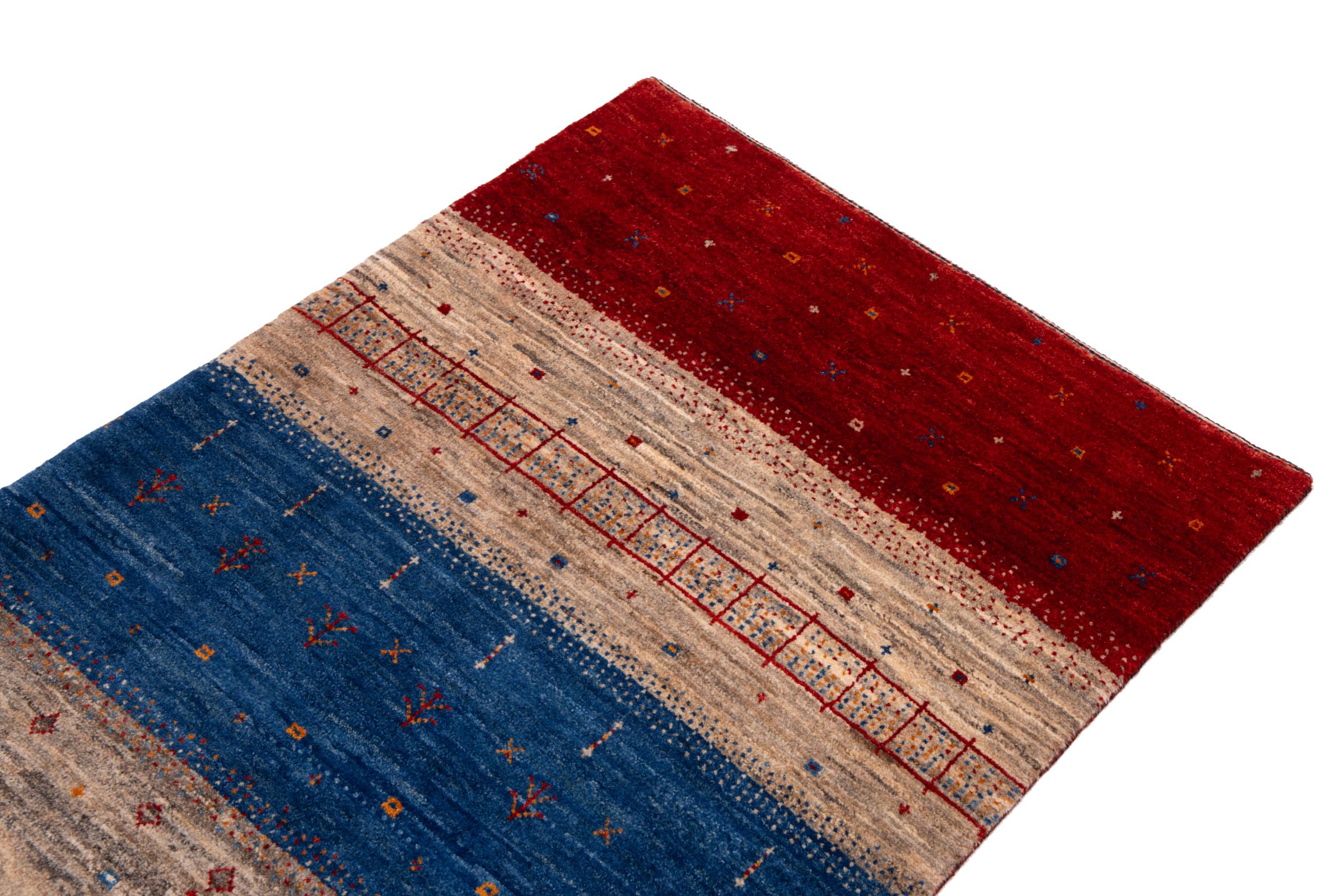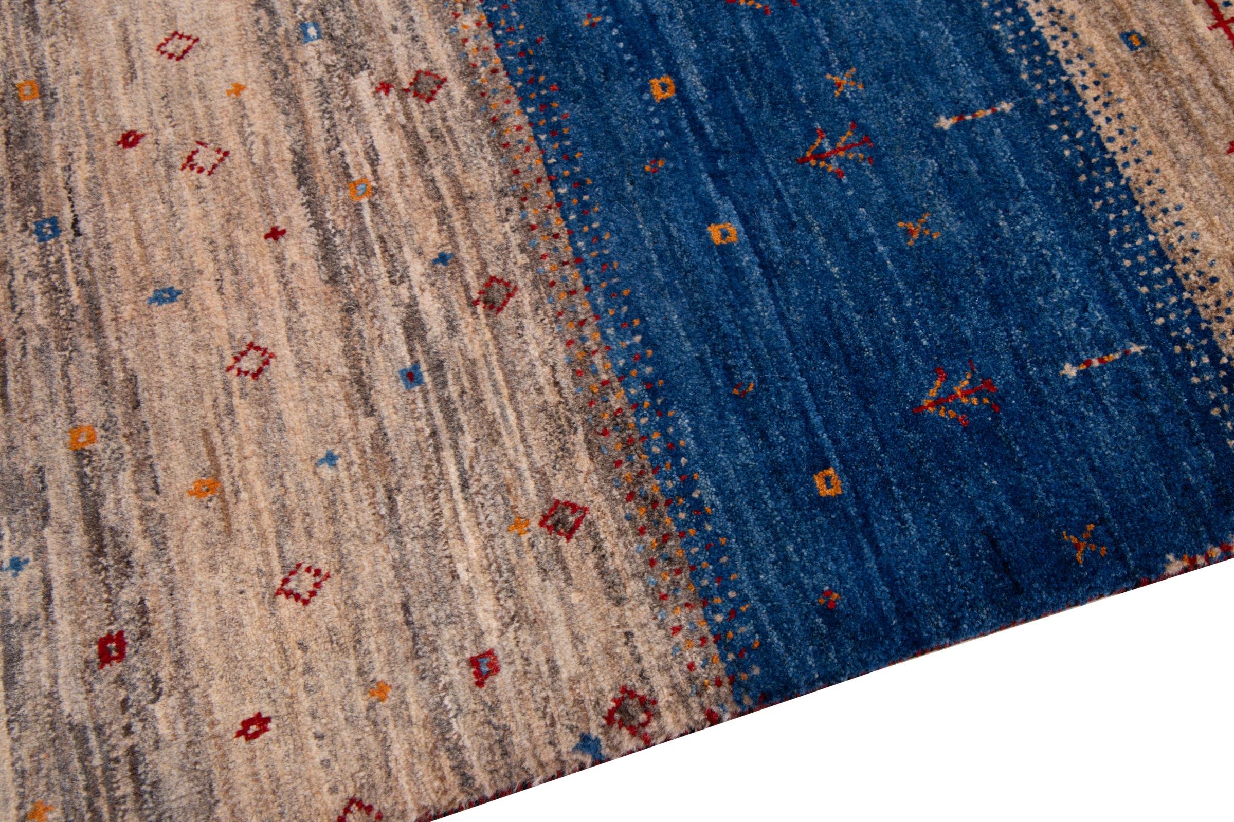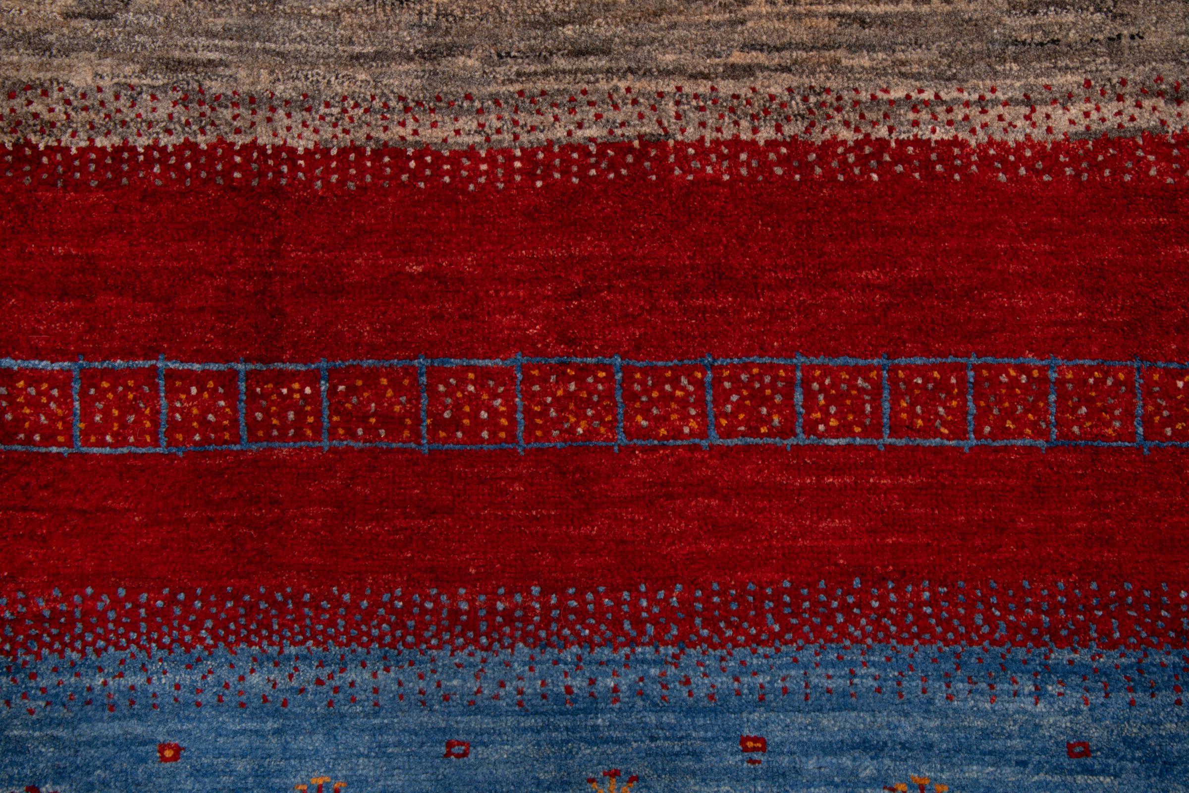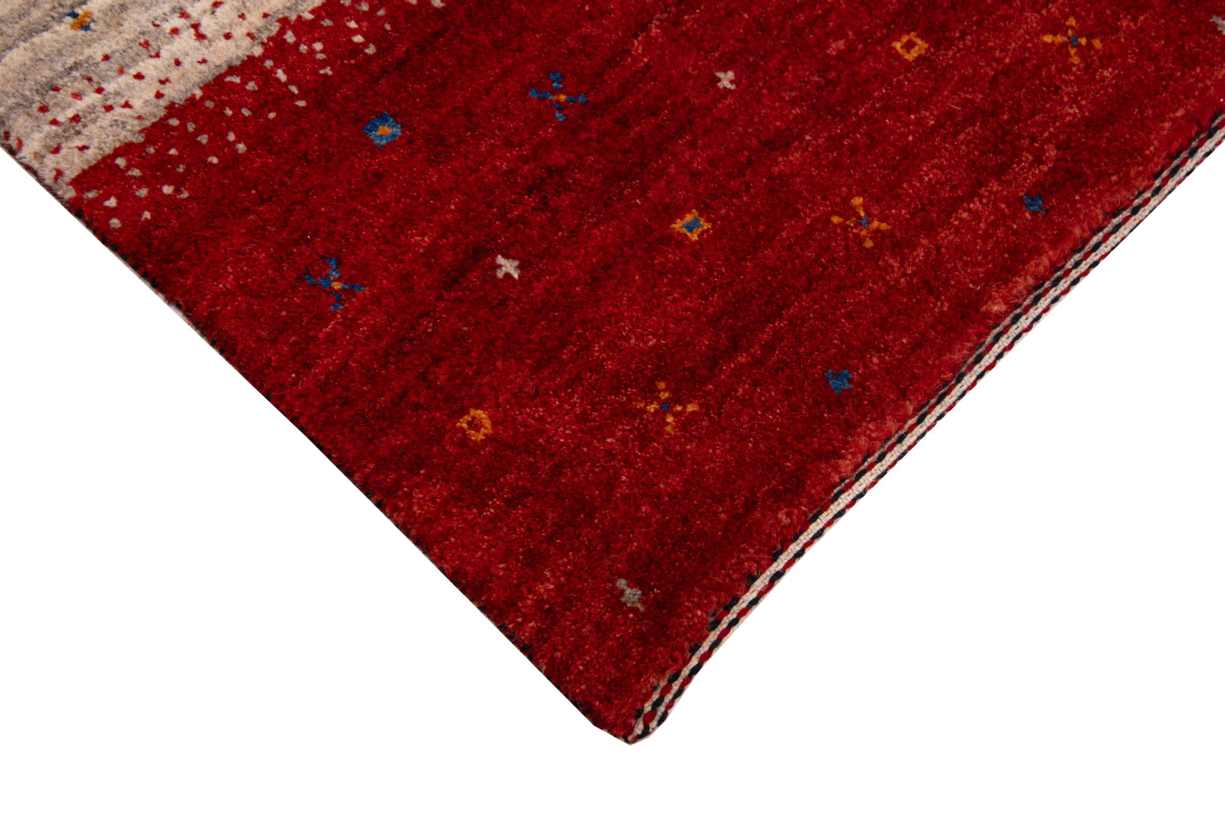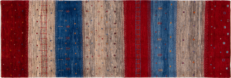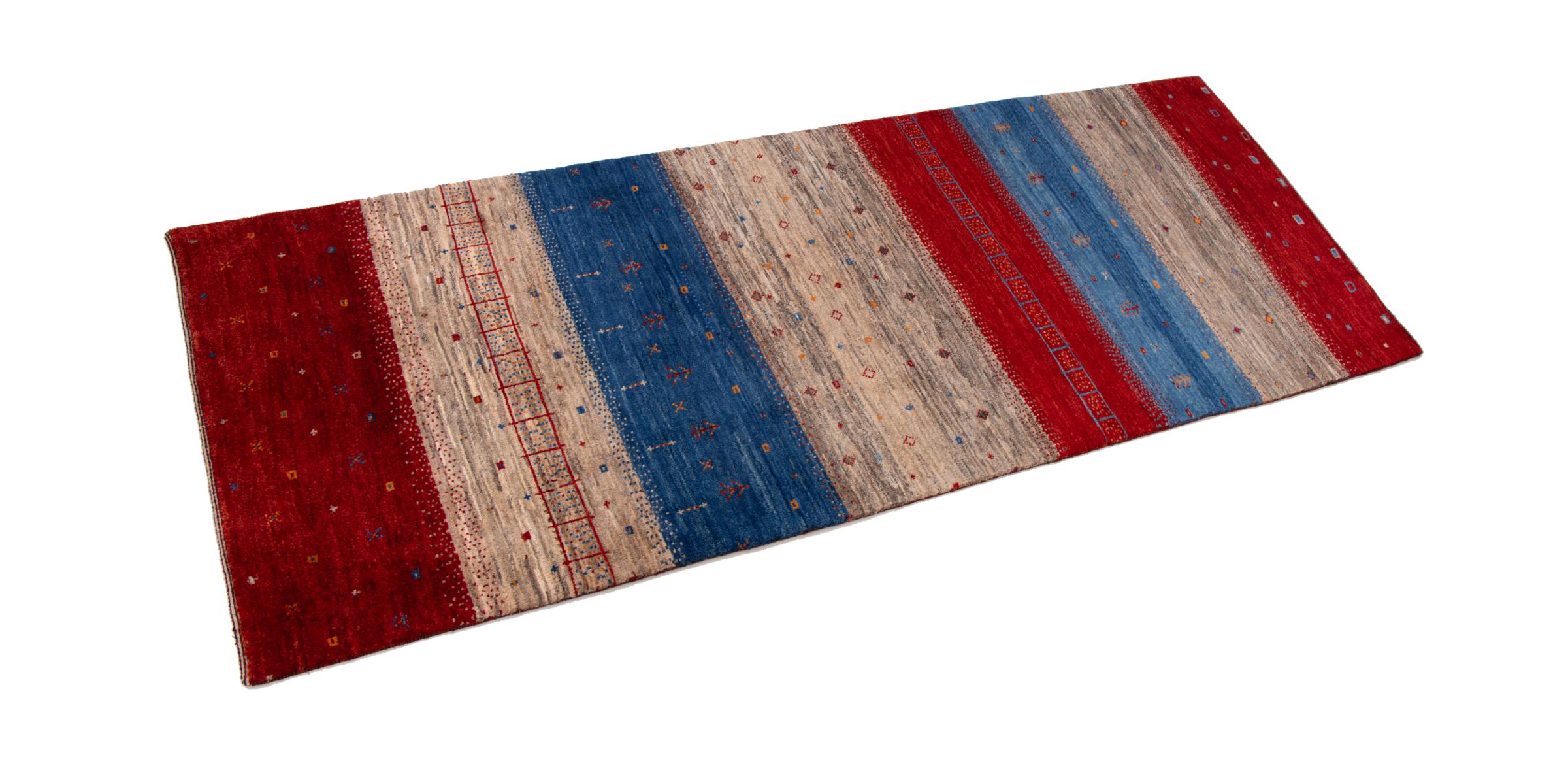 Dieser schöne Teppich ist ein persischer Gabbeh und gehört damit zu den hochwertigsten Gabbeh Teppichen. Die Teppiche werden von Nomaden oder Halbnomaden im Iran nach traditionellem Kunsthandwerk geknüpft. Die schlichten Motive und Muster sind meist aus der unmittelbaren Umgebung der Nomaden inspiriert. So sind beispielsweise Kamele, Bäume oder Büsche auf den traditionellen Teppichen zu finden. Perser Gabbeh Teppiche bestehen aus Wolle von lokal gehaltenen Schafherden. Die Wolle ist daher meist noch von Hand gesponnen. So verkörpert jeder dieser Orientteppiche einen einzigartigen Charakter jahrhundertealter Kultur.
