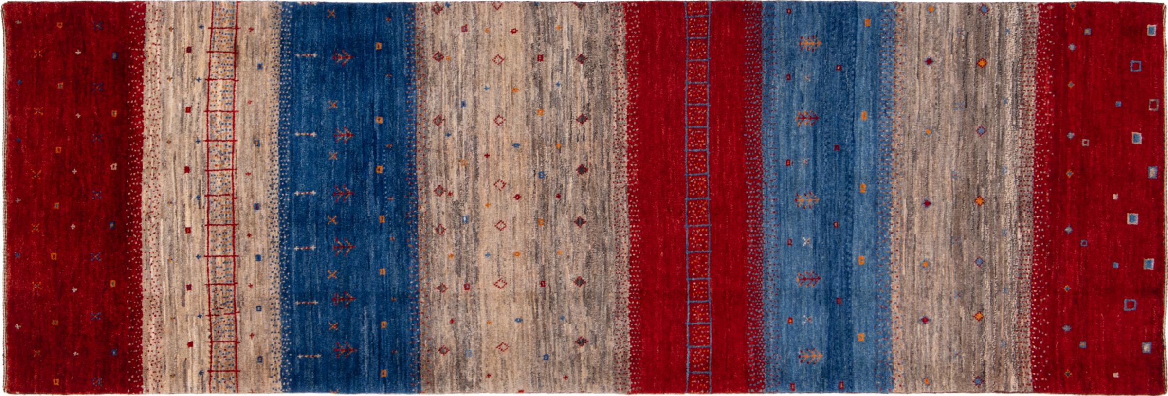 Teppich-Nr.: 293353007094549 Größe: 8'11"x3'0" ft Dicke: ca. 0.59 in Knoten: 46 - 58 / Quadratzoll Verarbeitung: Handgeknüpft Flor: Handgesponnene Wolle Kette: Natürliche Wolle Ursprung: Persien Alter: Neu Gewicht: ca. 22 lb Auch bekannt als Gabbe, Kashkuli Anzahl auf Lager: Unikat - Nur 1 auf Lager