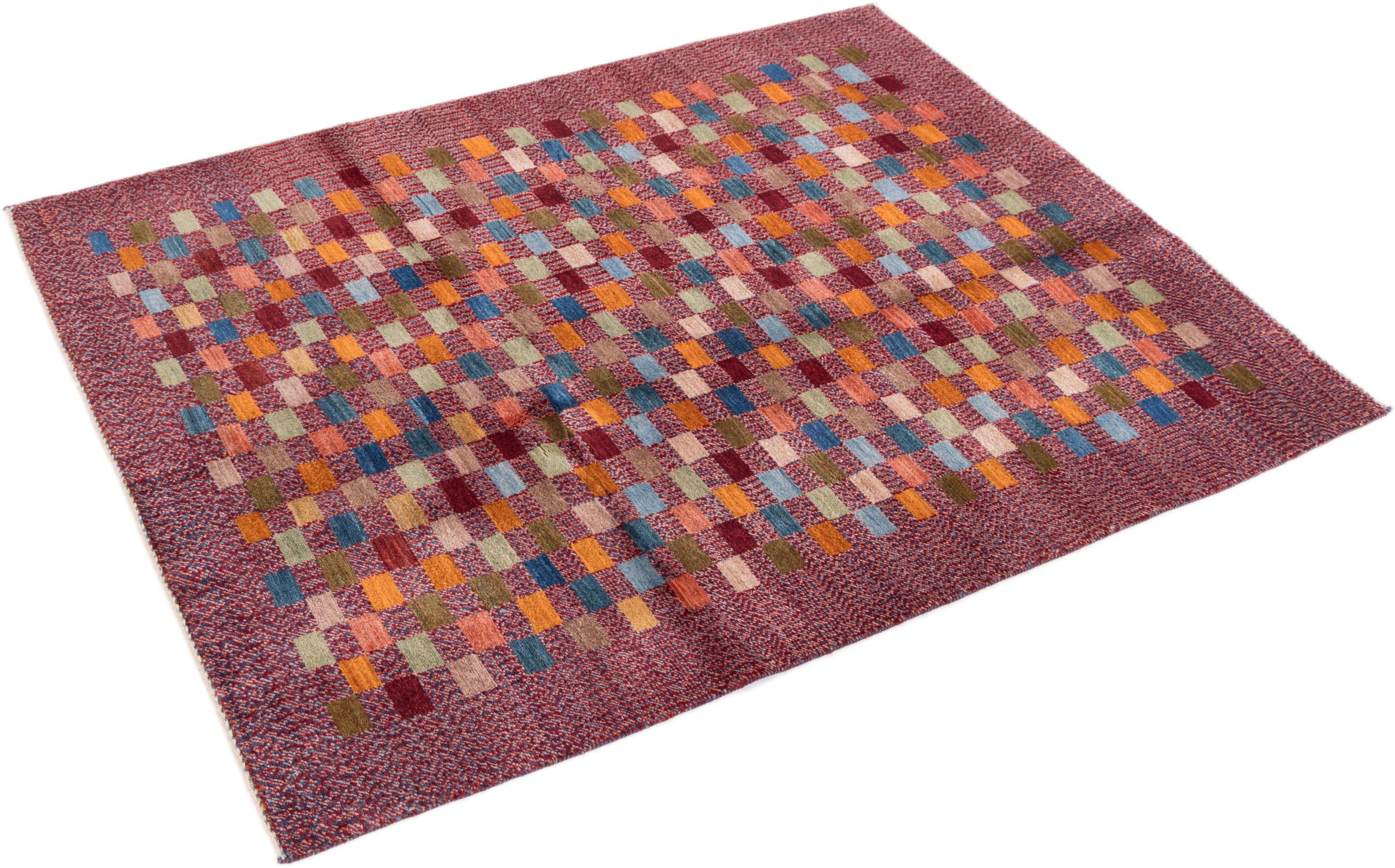 Dieser schöne Teppich ist ein persischer Gabbeh und gehört damit zu den hochwertigsten Gabbeh Teppichen. Die Teppiche werden von Nomaden oder Halbnomaden im Iran nach traditionellem Kunsthandwerk geknüpft. Die schlichten Motive und Muster sind meist aus der unmittelbaren Umgebung der Nomaden inspiriert. So sind beispielsweise Kamele, Bäume oder Büsche auf den traditionellen Teppichen zu finden. Perser Gabbeh Teppiche bestehen aus Wolle von lokal gehaltenen Schafherden. Die Wolle ist daher meist noch von Hand gesponnen. So verkörpert jeder dieser Orientteppiche einen einzigartigen Charakter jahrhundertealter Kultur.
