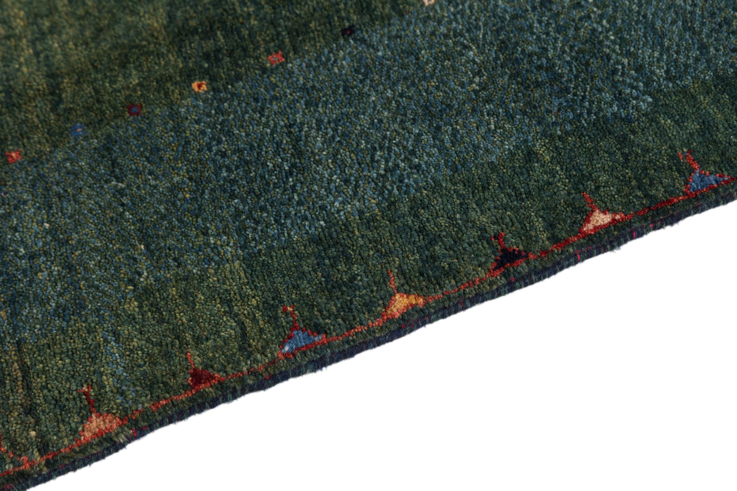 Dieser schöne Teppich ist ein persischer Gabbeh und gehört damit zu den hochwertigsten Gabbeh Teppichen. Die Teppiche werden von Nomaden oder Halbnomaden im Iran nach traditionellem Kunsthandwerk geknüpft. Die schlichten Motive und Muster sind meist aus der unmittelbaren Umgebung der Nomaden inspiriert. So sind beispielsweise Kamele, Bäume oder Büsche auf den traditionellen Teppichen zu finden. Perser Gabbeh Teppiche bestehen aus Wolle von lokal gehaltenen Schafherden. Die Wolle ist daher meist noch von Hand gesponnen. So verkörpert jeder dieser Orientteppiche einen einzigartigen Charakter jahrhundertealter Kultur.