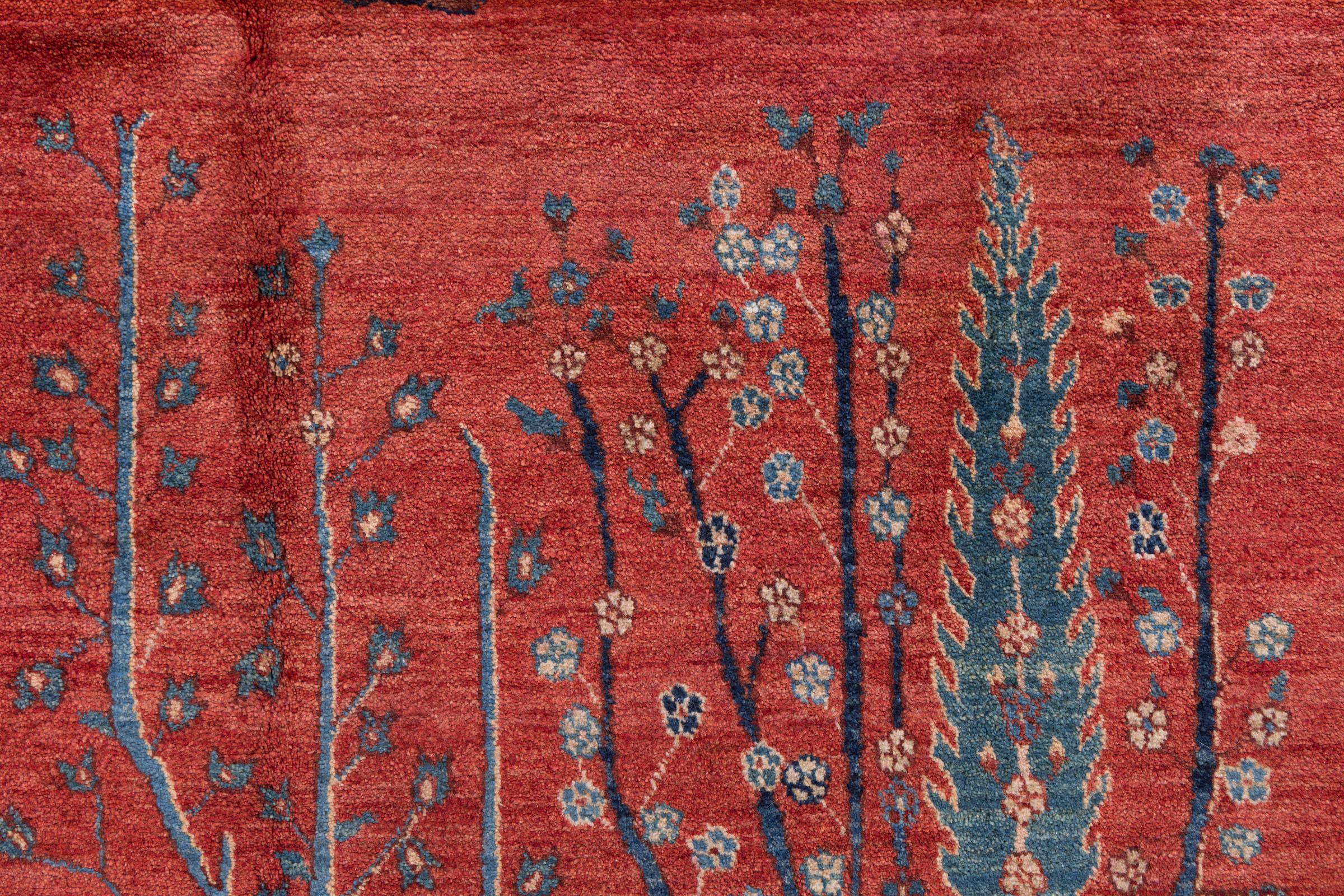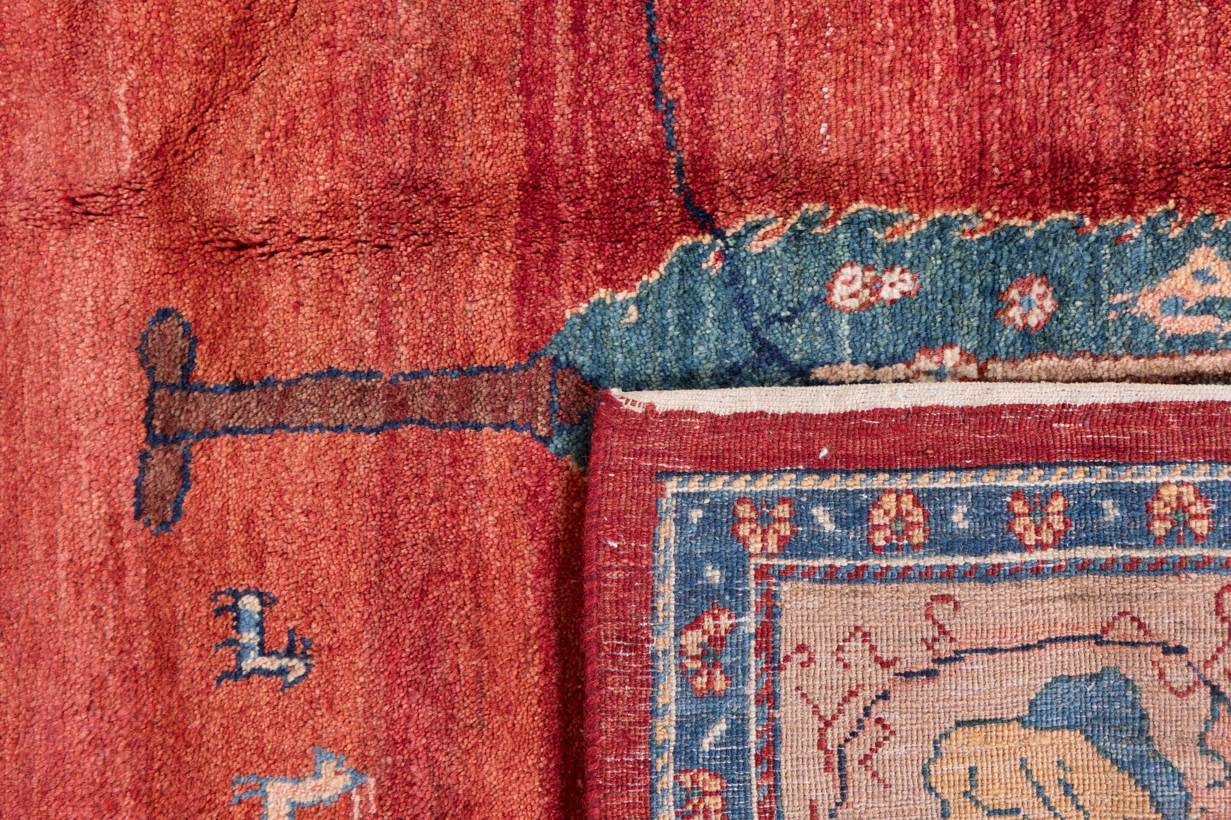 Dieser schöne Teppich ist ein persischer Gabbeh und gehört damit zu den hochwertigsten Gabbeh Teppichen. Die Teppiche werden von Nomaden oder Halbnomaden im Iran nach traditionellem Kunsthandwerk geknüpft. Die schlichten Motive und Muster sind meist aus der unmittelbaren Umgebung der Nomaden inspiriert. So sind beispielsweise Kamele, Bäume oder Büsche auf den traditionellen Teppichen zu finden. Perser Gabbeh Teppiche bestehen aus Wolle von lokal gehaltenen Schafherden. Die Wolle ist daher meist noch von Hand gesponnen. So verkörpert jeder dieser Orientteppiche einen einzigartigen Charakter jahrhundertealter Kultur.