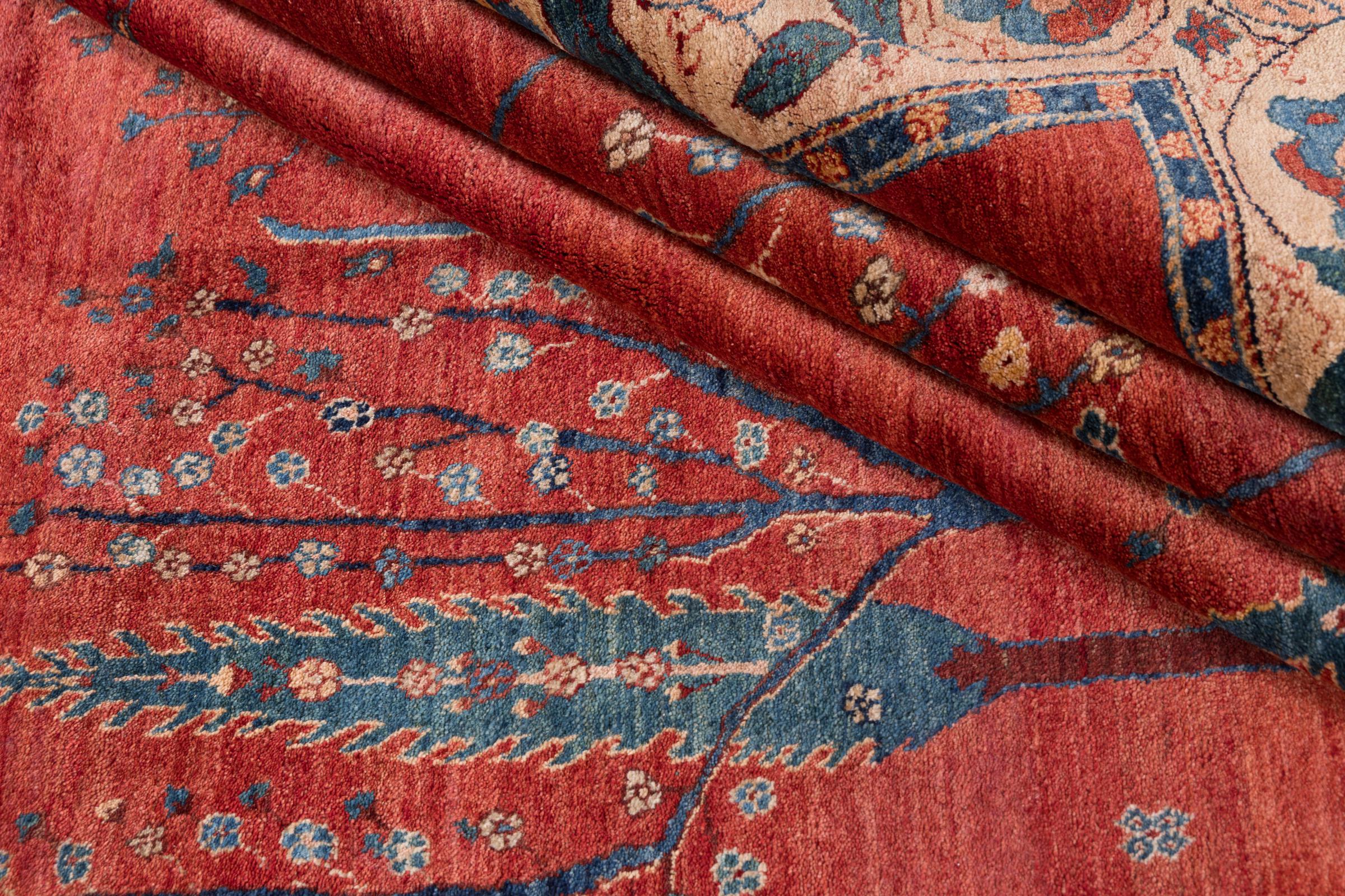Dieser Teppich besteht aus von Hand gesponnener Schafwolle in höchster Qualitätsstufe. Vor allem im Iran (ehem. Persien), Afghanistan und Pakistan wird Wolle noch von Hand gesponnen, bevor die eigentliche Knüpfung des Teppichs beginnt. Wolle hat sich als natürliches und extrem strapazierfähiges Material über Jahrhunderte hinweg bewährt. Sie besitzt unter Anderem schmutzabweisende und wärmedämmende Eigenschaften. Zugleich ist Wolle unvergleichlich weich und bringt einen natürlichen Glanz mit sich.