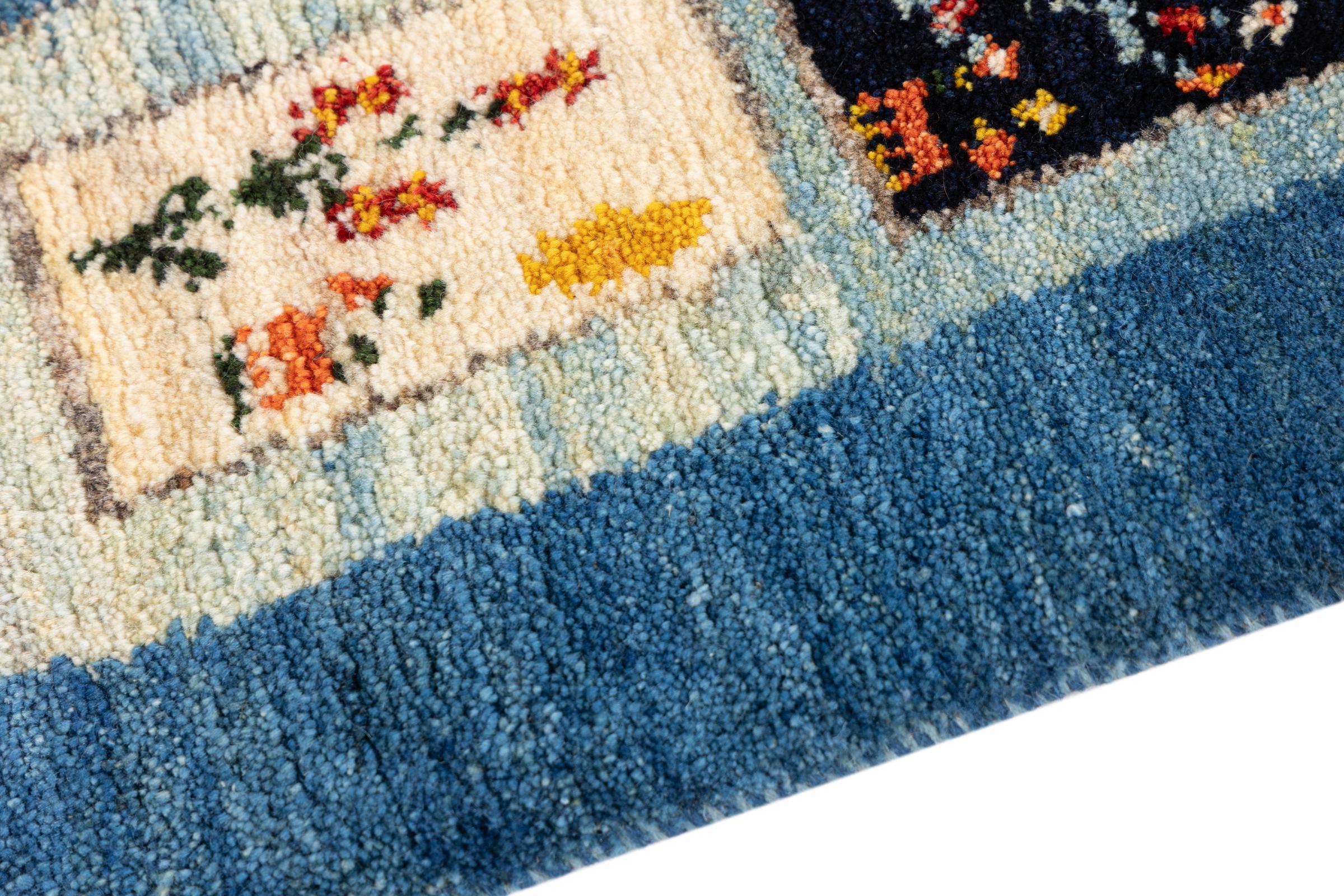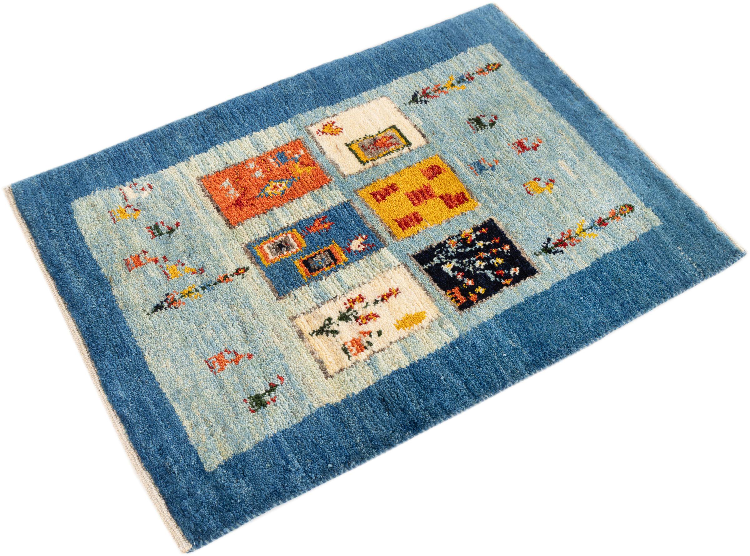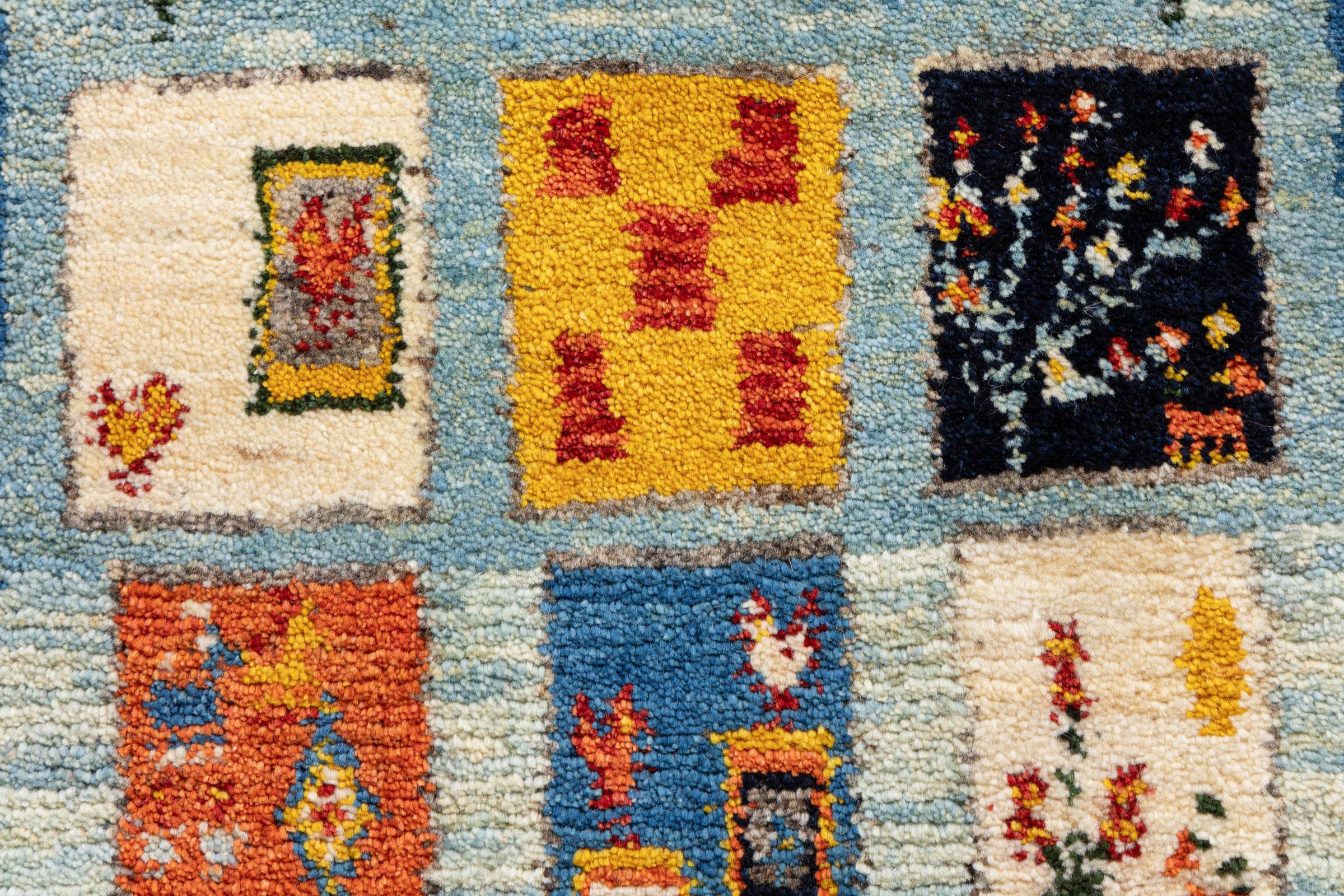 Dieser schöne Teppich ist ein persischer Gabbeh und gehört damit zu den hochwertigsten Gabbeh Teppichen. Die Teppiche werden von Nomaden oder Halbnomaden im Iran nach traditionellem Kunsthandwerk geknüpft. Die schlichten Motive und Muster sind meist aus der unmittelbaren Umgebung der Nomaden inspiriert. So sind beispielsweise Kamele, Bäume oder Büsche auf den traditionellen Teppichen zu finden. Perser Gabbeh Teppiche bestehen aus Wolle von lokal gehaltenen Schafherden. Die Wolle ist daher meist noch von Hand gesponnen. So verkörpert jeder dieser Orientteppiche einen einzigartigen Charakter jahrhundertealter Kultur.