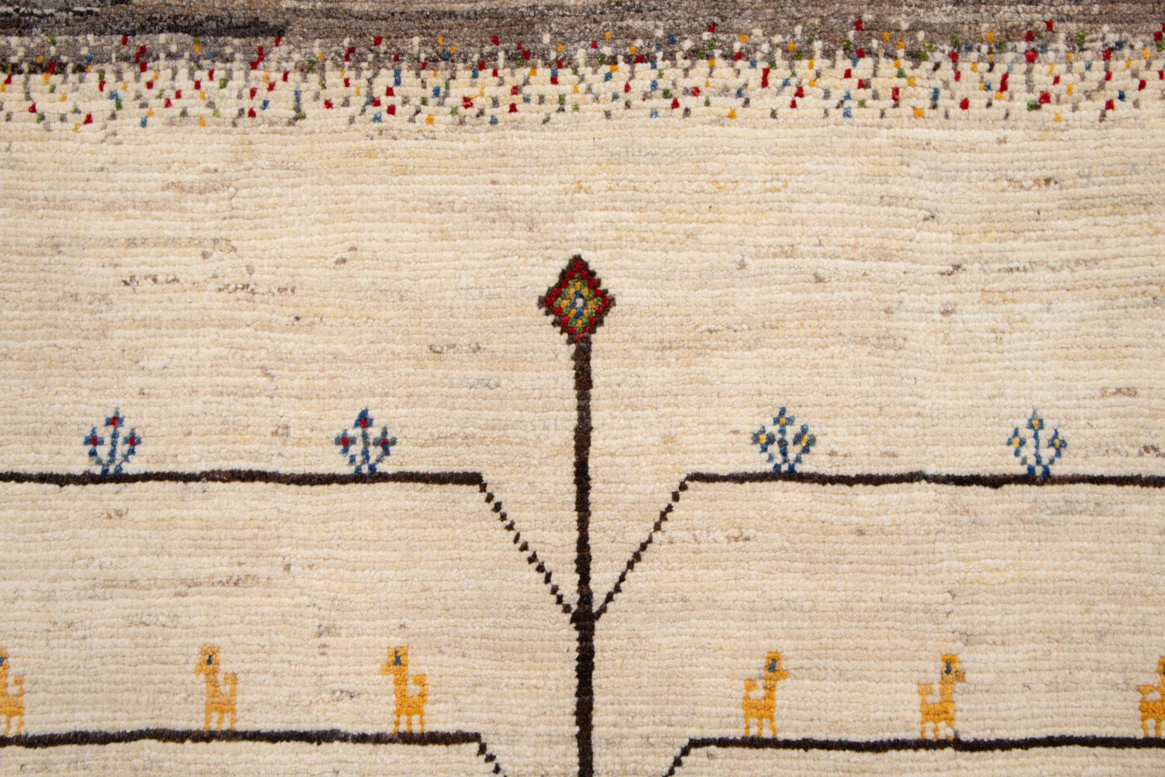 Dieser Teppich gehört zu Dorf- und Nomadenteppichen aus dem Iran, ehemals Persien. Diese Art von Teppich wird in kleineren Städten und Dörfern von Hand in alter Tradition geknüpft. Auch Nomaden knüpfen noch Perserteppiche unter freiem Himmel. Die Teppiche werden ohne Vorlage und komplett aus dem Kopf geknüpft. Sie sind gekennzeichnet durch klassische Ornamente, die in geradlinigen und geometrischen Mustern angelegt sind. Dank ihrer kulturell-traditionellen Herkunft, haben diese Teppiche einen einzigartigen Charakter, der das alte Persien verkörpert.