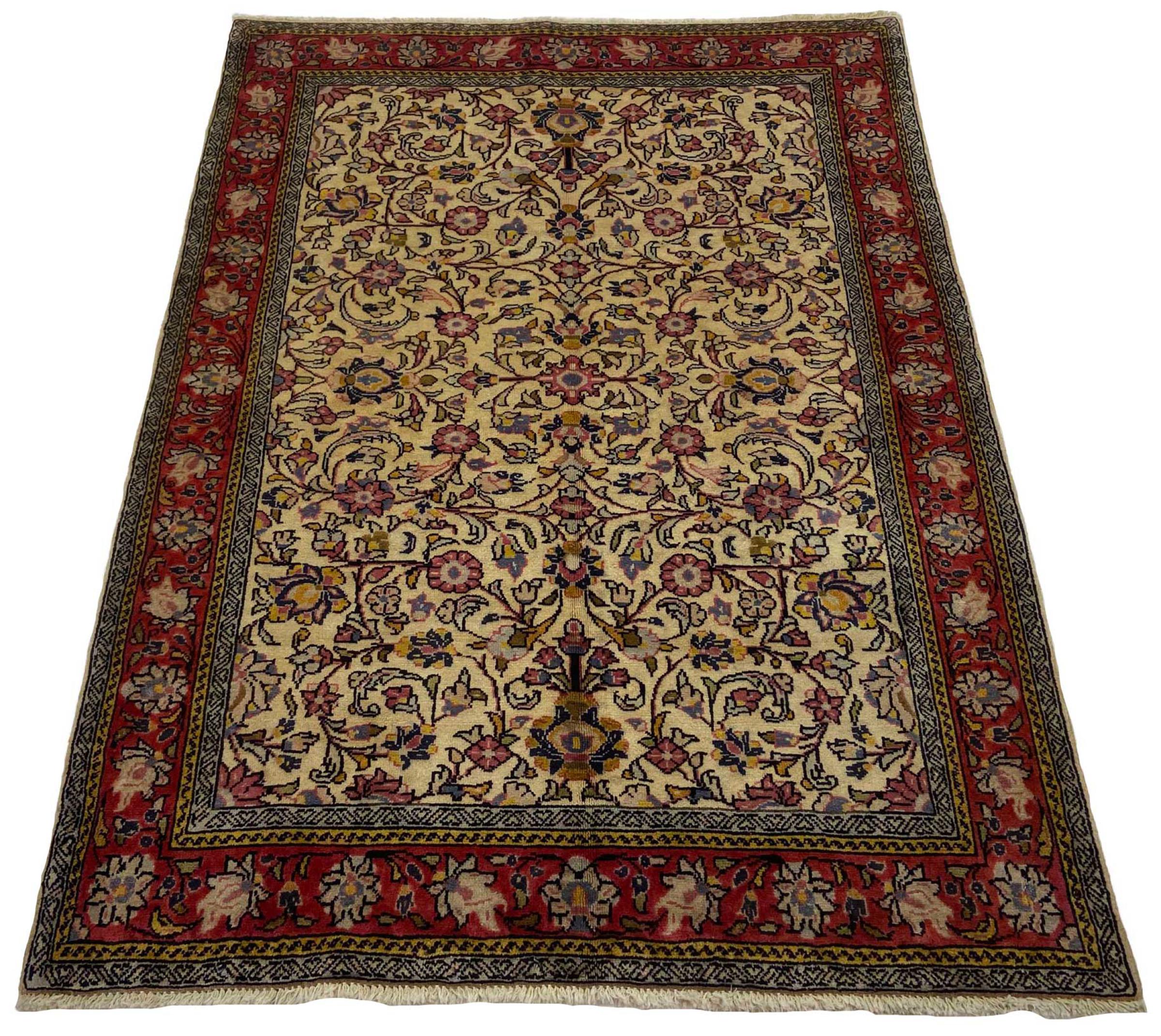 Sarough liegt nördlich von Arak und ist der Herkunftsort für manche der begehrtesten Perserteppiche heutzutage. Antike Sarough Teppiche haben ein sehr eigenes Lachsrot, das fast einzigartig unter handgeknüpften Orientteppichen ist. Zudem bestehen die Teppiche aus hochwertiger Schafwolle und Pflanzenfarben, gefertigt in ausgezeichneter Qualität. Ein echter Sarough hält ein Leben lang.