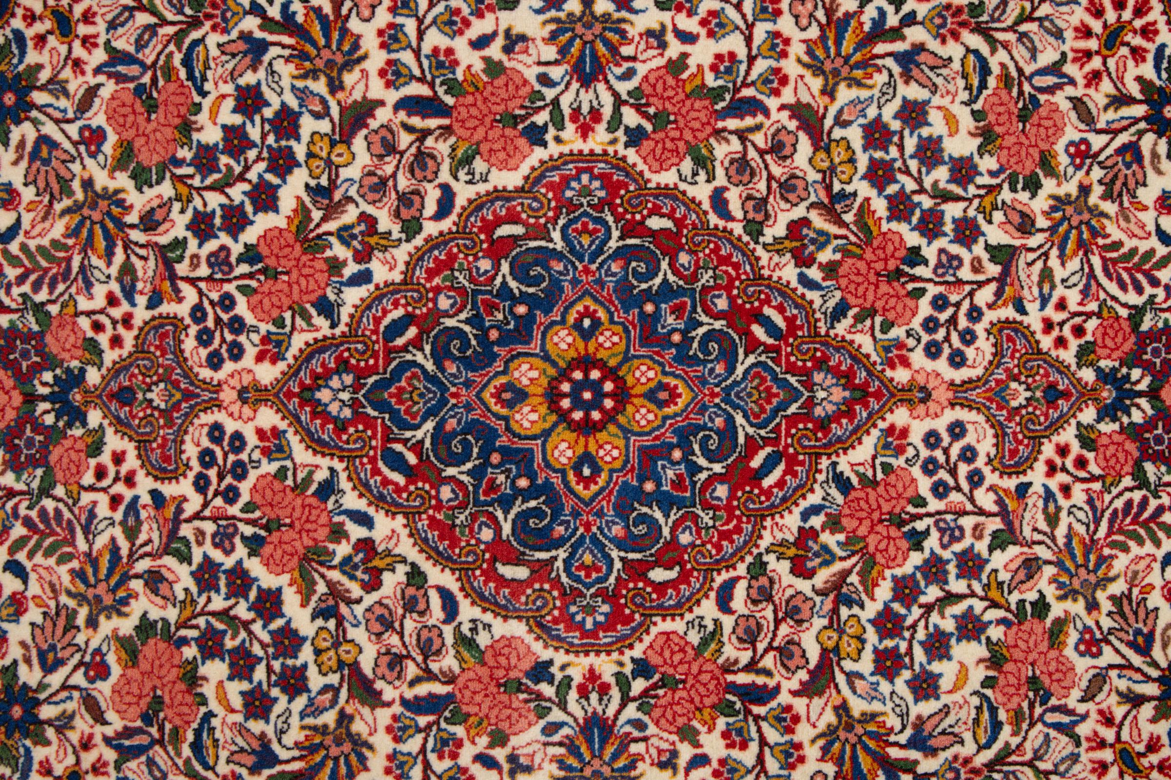 Von Hand geknüpft wurde dieser Perserteppich in Arak. Die Region steht für schwere Teppiche, die von sehr hoher Qualität und Robustheit sind. Sarough Teppiche erfreuen sich zudem einer extrem hohen Beliebtheit, dank ihrer kräftigen Farben und den wunderschönen Ornamenten. Dieser Teppich ist garantiert ein zeitloses Kunstwerk.