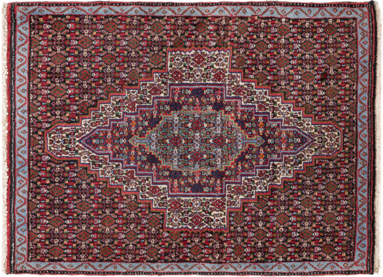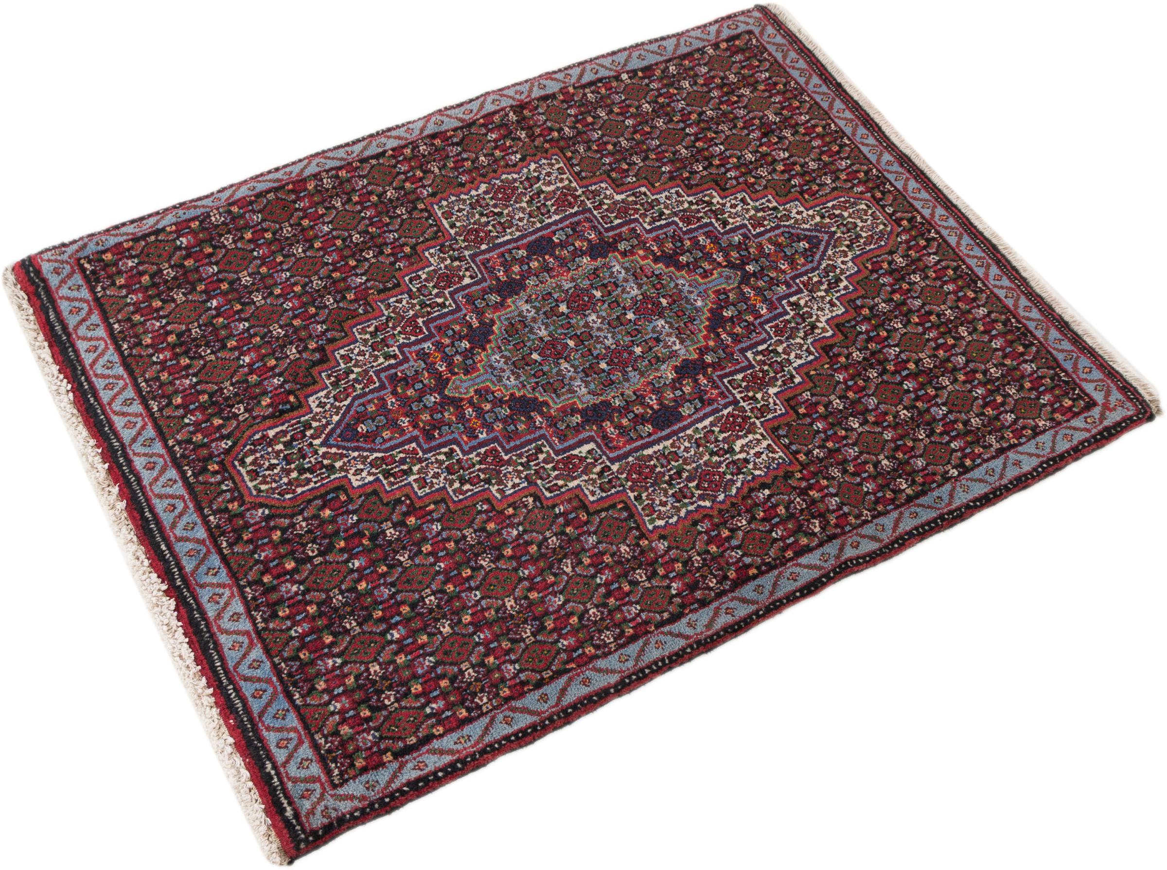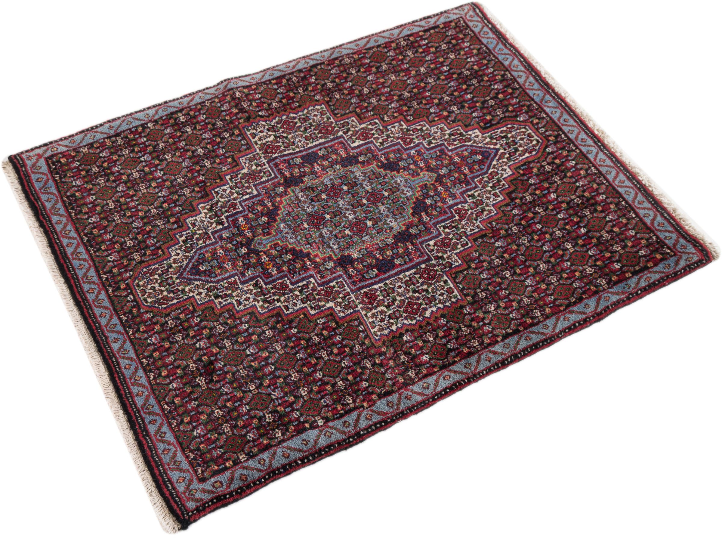 Dieser Teppich gehört zu Dorf- und Nomadenteppichen aus dem Iran, ehemals Persien. Diese Art von Teppich wird in kleineren Städten und Dörfern von Hand in alter Tradition geknüpft. Auch Nomaden knüpfen noch Perserteppiche unter freiem Himmel. Die Teppiche werden ohne Vorlage und komplett aus dem Kopf geknüpft. Sie sind gekennzeichnet durch klassische Ornamente, die in geradlinigen und geometrischen Mustern angelegt sind. Dank ihrer kulturell-traditionellen Herkunft, haben diese Teppiche einen einzigartigen Charakter, der das alte Persien verkörpert.