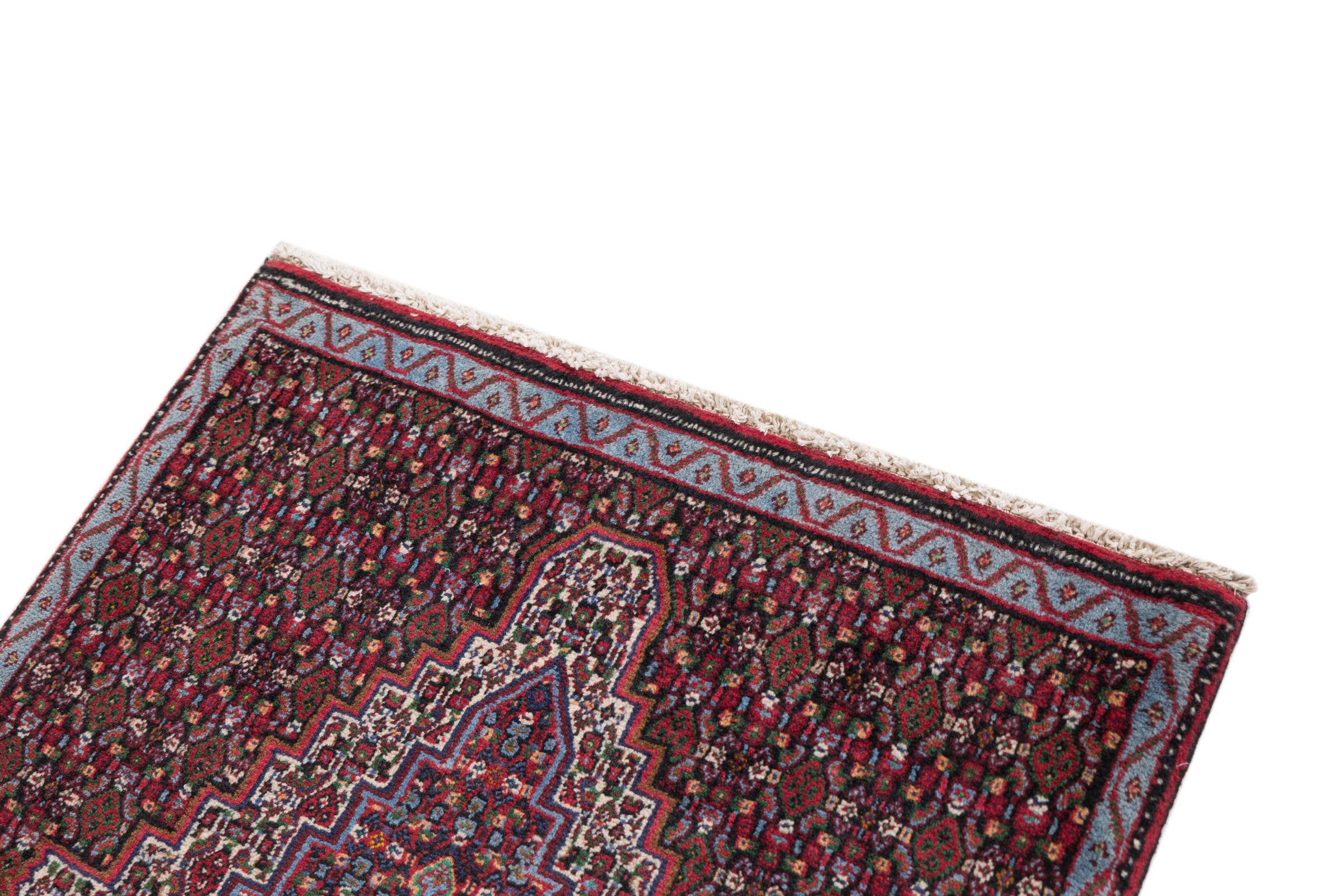 Dieser Senneh Teppich wurde in der Provinz Kurdistan geknüpft, die im westlichen Teil des Irans liegt. Das handgefertigte Unikat besteht aus robuster Naturwolle und ist äußerst widerstandsfähig. Mit seiner belastbaren Struktur und dem detailreichen Dessin eignet sich dieser Senneh Teppich als eindrucksvolles, langlebiges Wohnelement in stark frequentierten Bereichen wie dem Flur und dem Wohnzimmer.