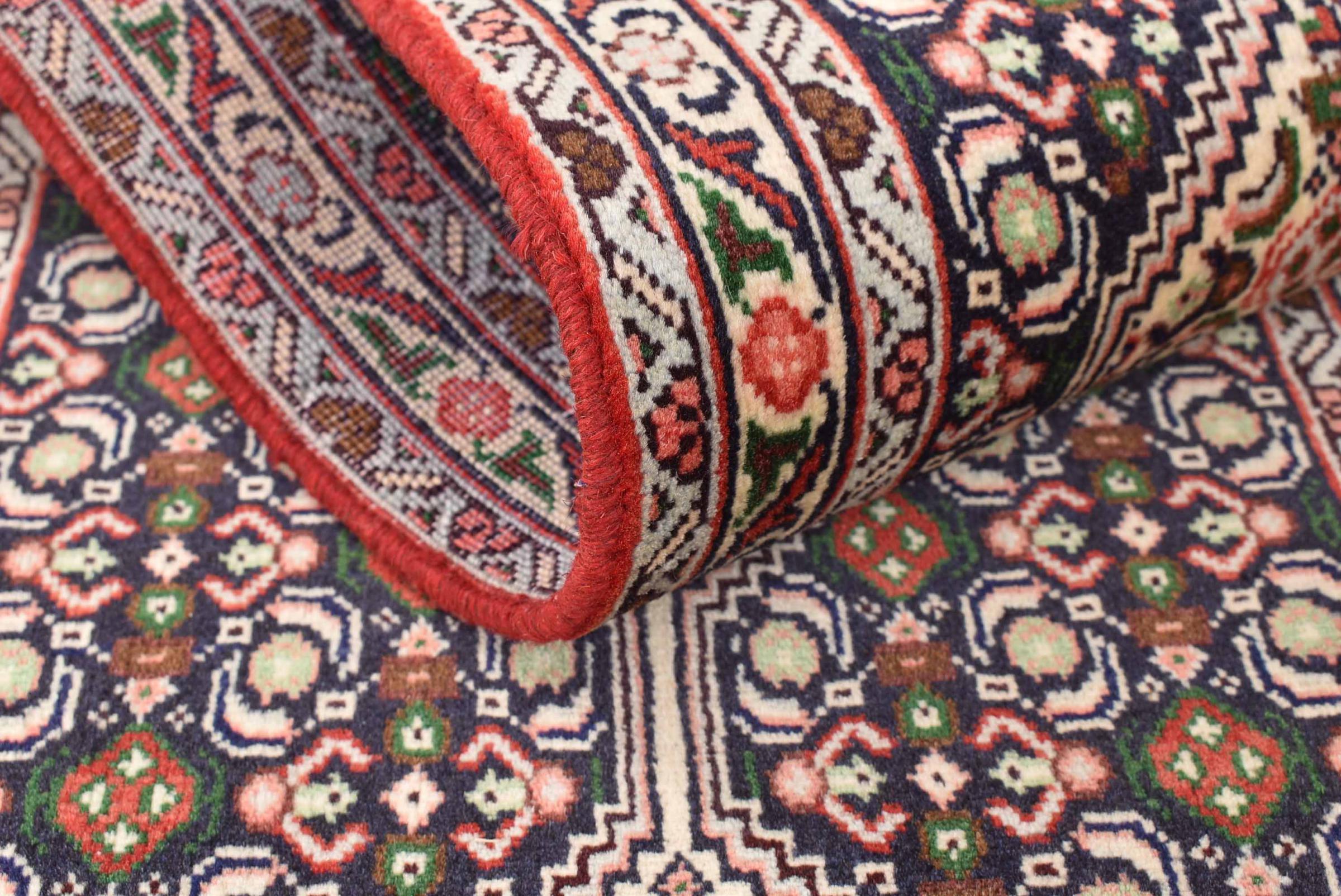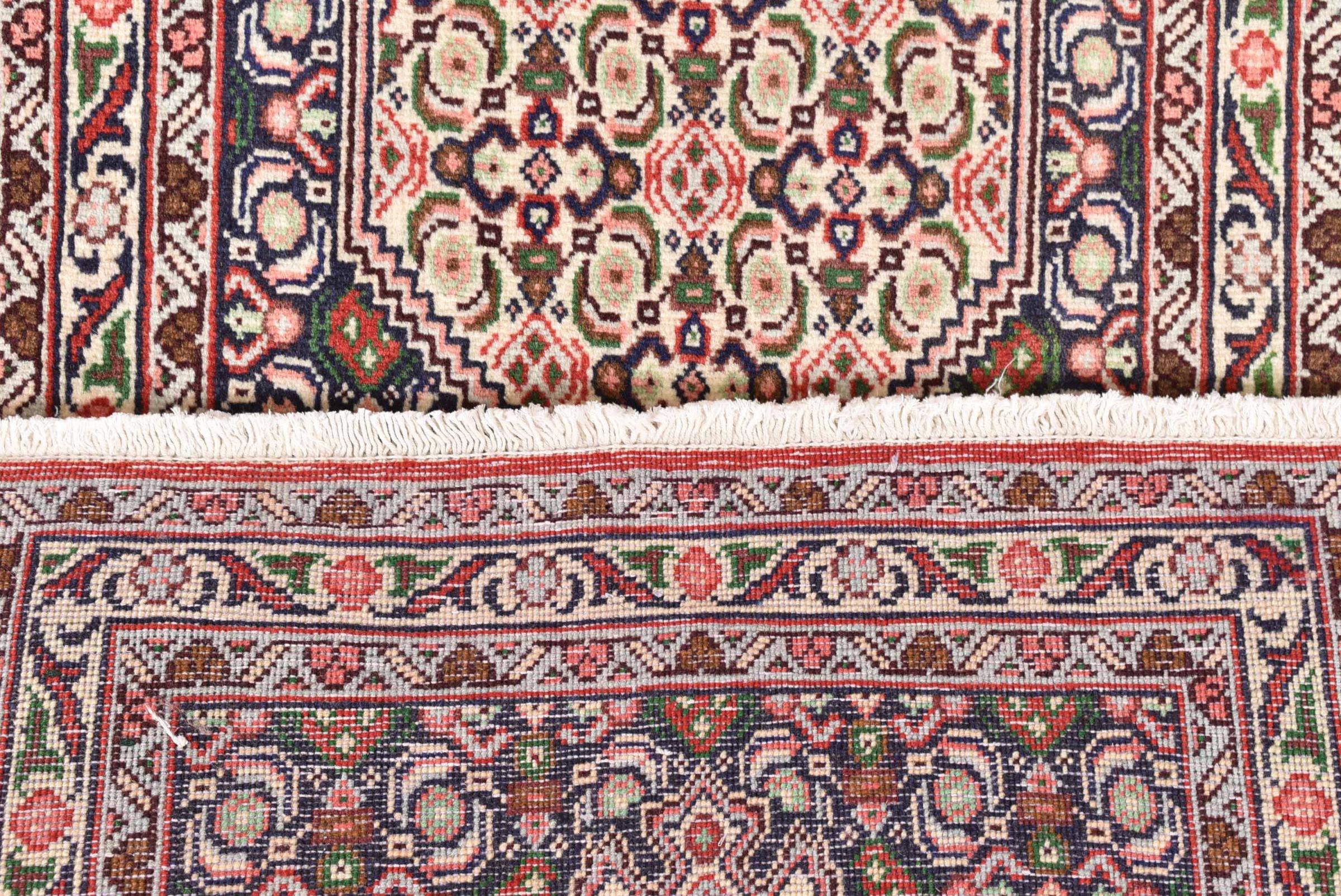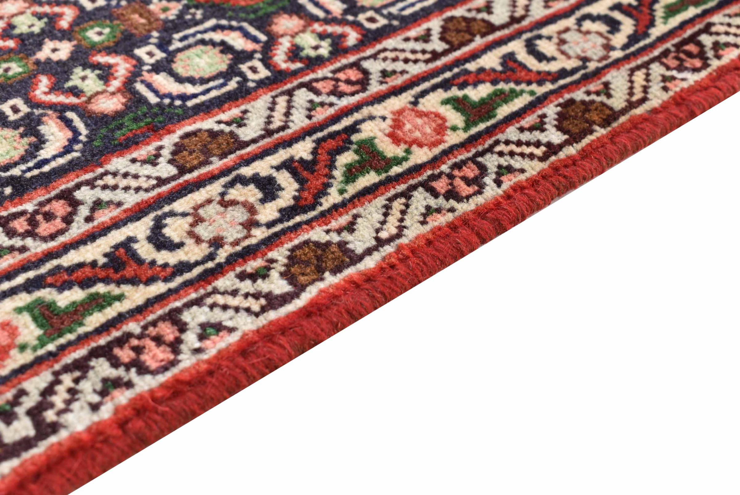 Dieser Teppich gehört zu Dorf- und Nomadenteppichen aus dem Iran, ehemals Persien. Diese Art von Teppich wird in kleineren Städten und Dörfern von Hand in alter Tradition geknüpft. Auch Nomaden knüpfen noch Perserteppiche unter freiem Himmel. Die Teppiche werden ohne Vorlage und komplett aus dem Kopf geknüpft. Sie sind gekennzeichnet durch klassische Ornamente, die in geradlinigen und geometrischen Mustern angelegt sind. Dank ihrer kulturell-traditionellen Herkunft, haben diese Teppiche einen einzigartigen Charakter, der das alte Persien verkörpert.