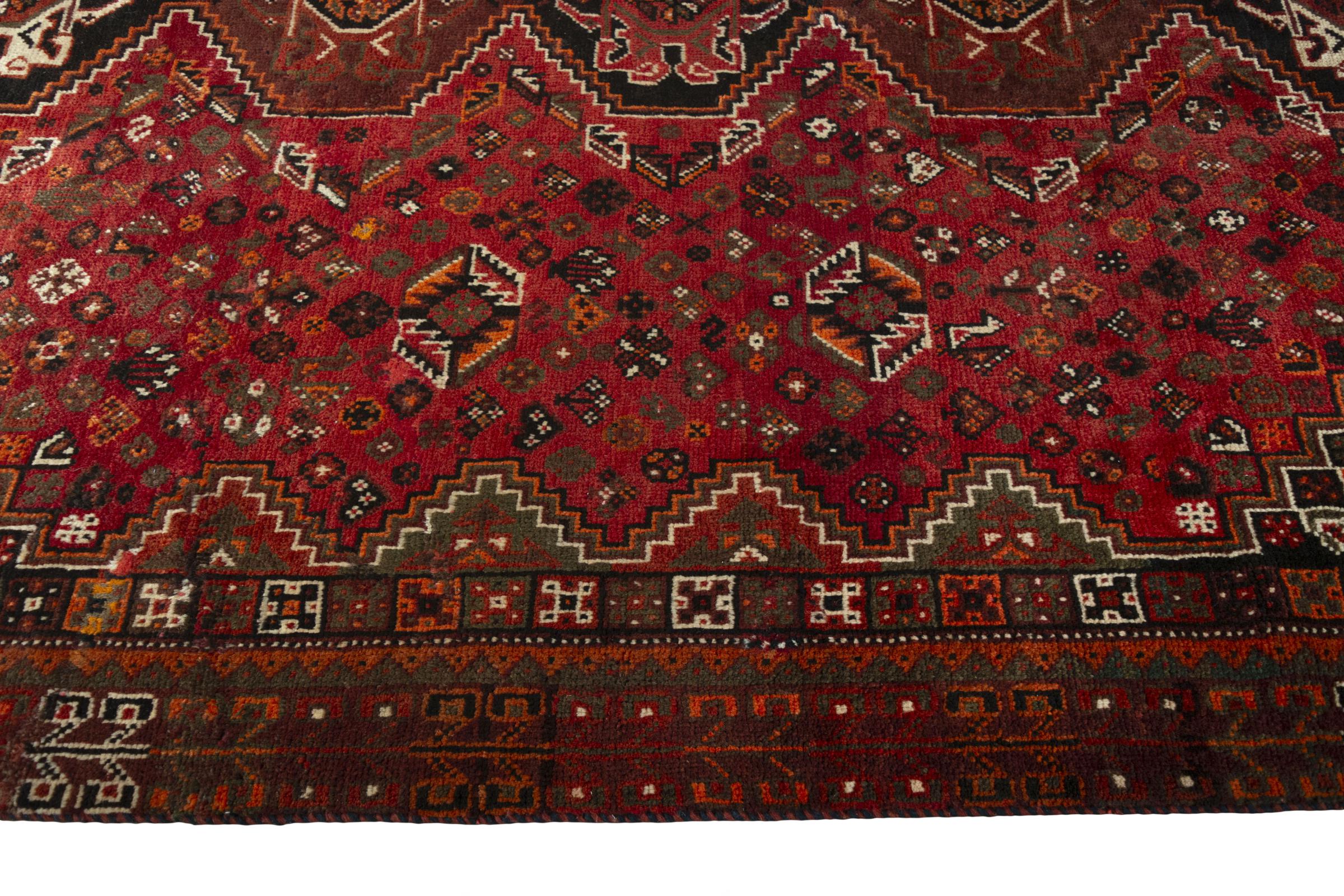 Dieser Shiraz-Teppich spiegelt das Handwerk von Nomaden der Provinz Fars wieder. Sein schlichtes Design, die schönen Farben und die gute Qualität sprechen genauso für ihn, wie seine lange Lebensdauer. Die geometrischen Muster und Formen sind ausnahmslos zeitlos und extrem beliebt auch in skandinavischen Einrichtungen. Die kräftigen Farben bringen Gemütlichkeit und Wärme in Ihren Raum.