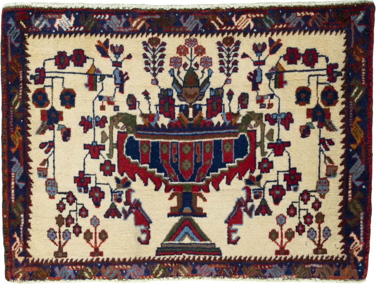 Dieser Teppich gehört zu Dorf- und Nomadenteppichen aus dem Iran, ehemals Persien. Diese Art von Teppich wird in kleineren Städten und Dörfern von Hand in alter Tradition geknüpft. Auch Nomaden knüpfen noch Perserteppiche unter freiem Himmel. Die Teppiche werden ohne Vorlage und komplett aus dem Kopf geknüpft. Sie sind gekennzeichnet durch klassische Ornamente, die in geradlinigen und geometrischen Mustern angelegt sind. Dank ihrer kulturell-traditionellen Herkunft, haben diese Teppiche einen einzigartigen Charakter, der das alte Persien verkörpert.