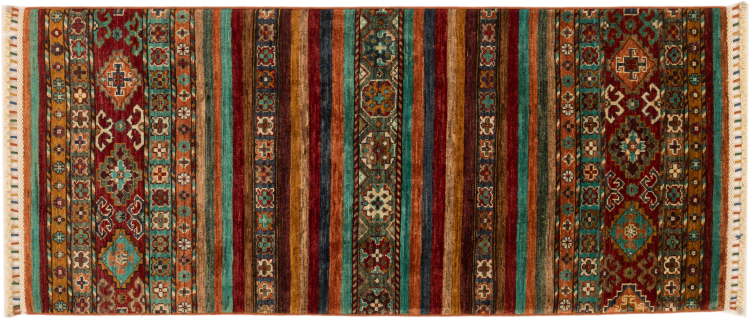Teppich-Nr.: 28030300907250 Größe: 5'9"x2'6" ft Dicke: ca. 0.2 in Knoten: 82 - 103 / Quadratzoll Verarbeitung: Handgeknüpft Flor: Handgesponnene Wolle Kette: Baumwolle Ursprung: Afghanistan Alter: Neu Gewicht: ca. 7 lb Anzahl auf Lager: Unikat - Nur 1 auf Lager