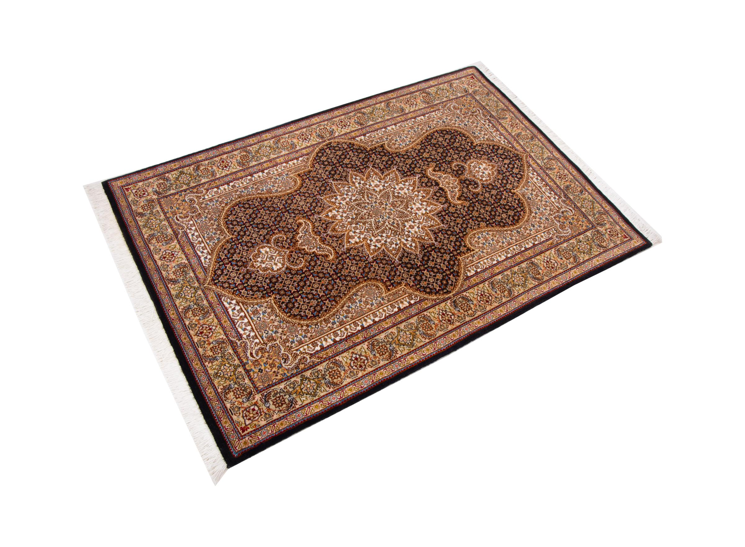Teppich-Nr.: 292514008121480 Größe: 149x101 cm Dicke: ca. 7 mm Knoten: 440 000 - 490 000 / m² Verarbeitung: Handgeknüpft Flor: Wolle mit Seide Kette: Baumwolle Ursprung: Persien Alter: Neu Gewicht: ca. 5 kg Auch bekannt als Tabriz, Tabris, Täbris, Tebriz, Tebris, 40Raj, 50Raj Anzahl auf Lager: Unikat - Nur 1 auf Lager