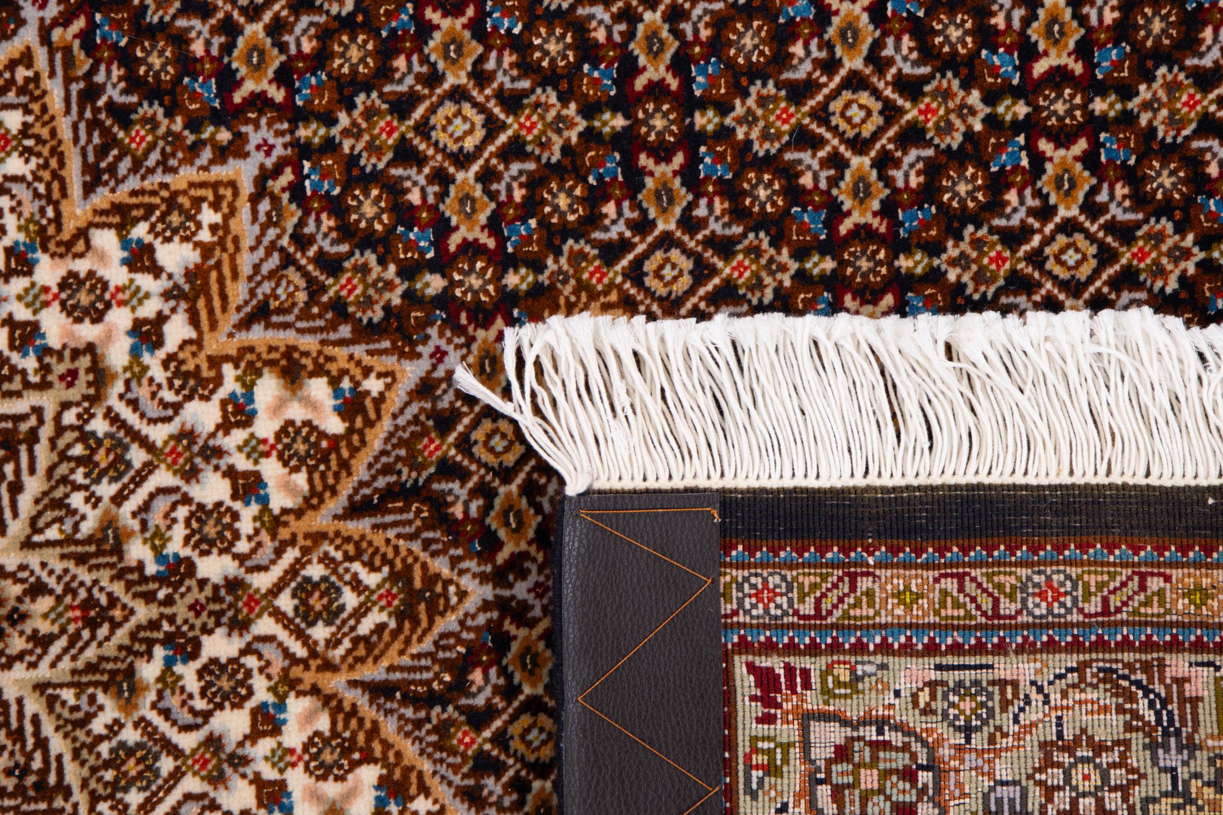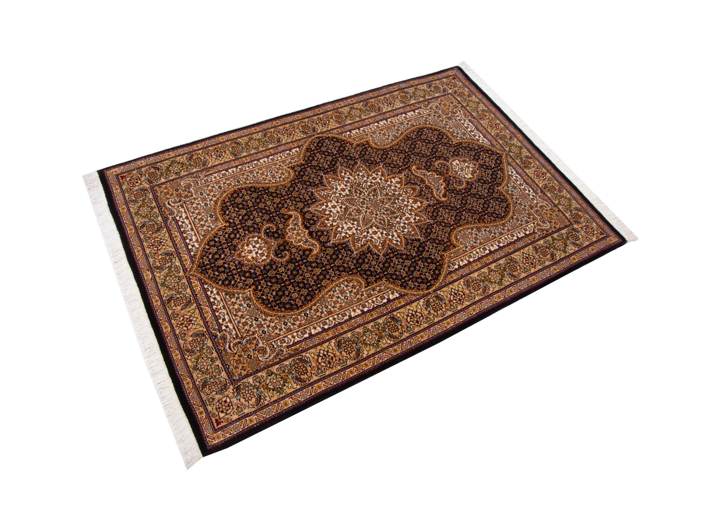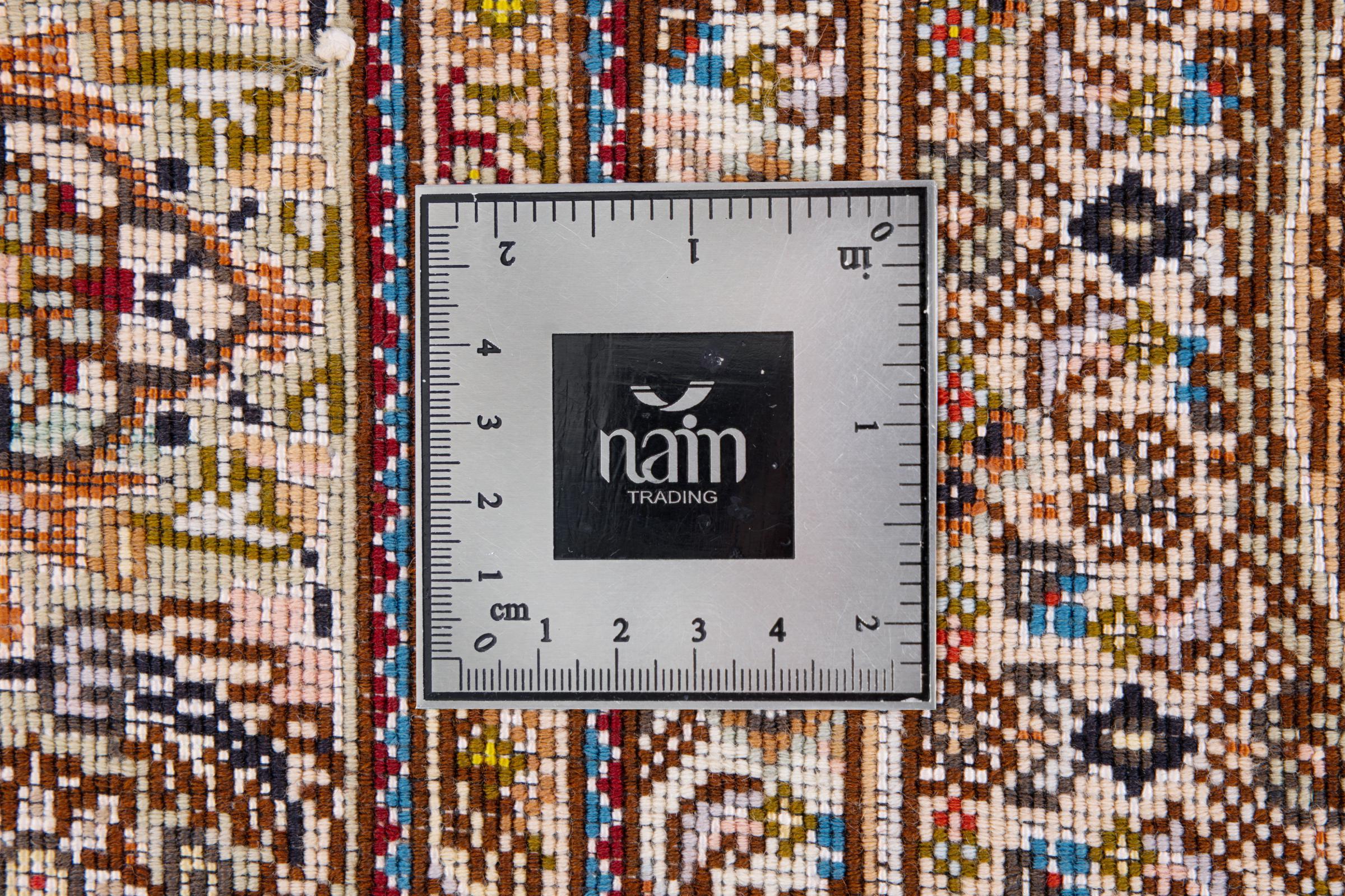 Dieser Täbriz wurde im Nordwesten des Iran, in der handwerklichen und gleichnamigen Stadt Tabriz handgeknüpft. Dabei wurde nur hochwertige Wolle und Naturseide verwendet. Er spiegelt mit seinen Mustern und dekorativen Elementen den Orient in seiner schönsten Form wieder. Lassen Sie ein Kunstwerk Einzug in Ihr Haus halten: Ein echtes Highlight für Sie und Ihre Gäste. Die Raj Anzahl gibt bei diesen Teppichen die Menge der Knoten auf einer Länge von 7cm wieder. So hat ein Täbriz 50Raj zum Beispiel grob 500.000 Knoten pro m2, ein 70Raj sogar ca. 1.000.000 Knoten pro m2.