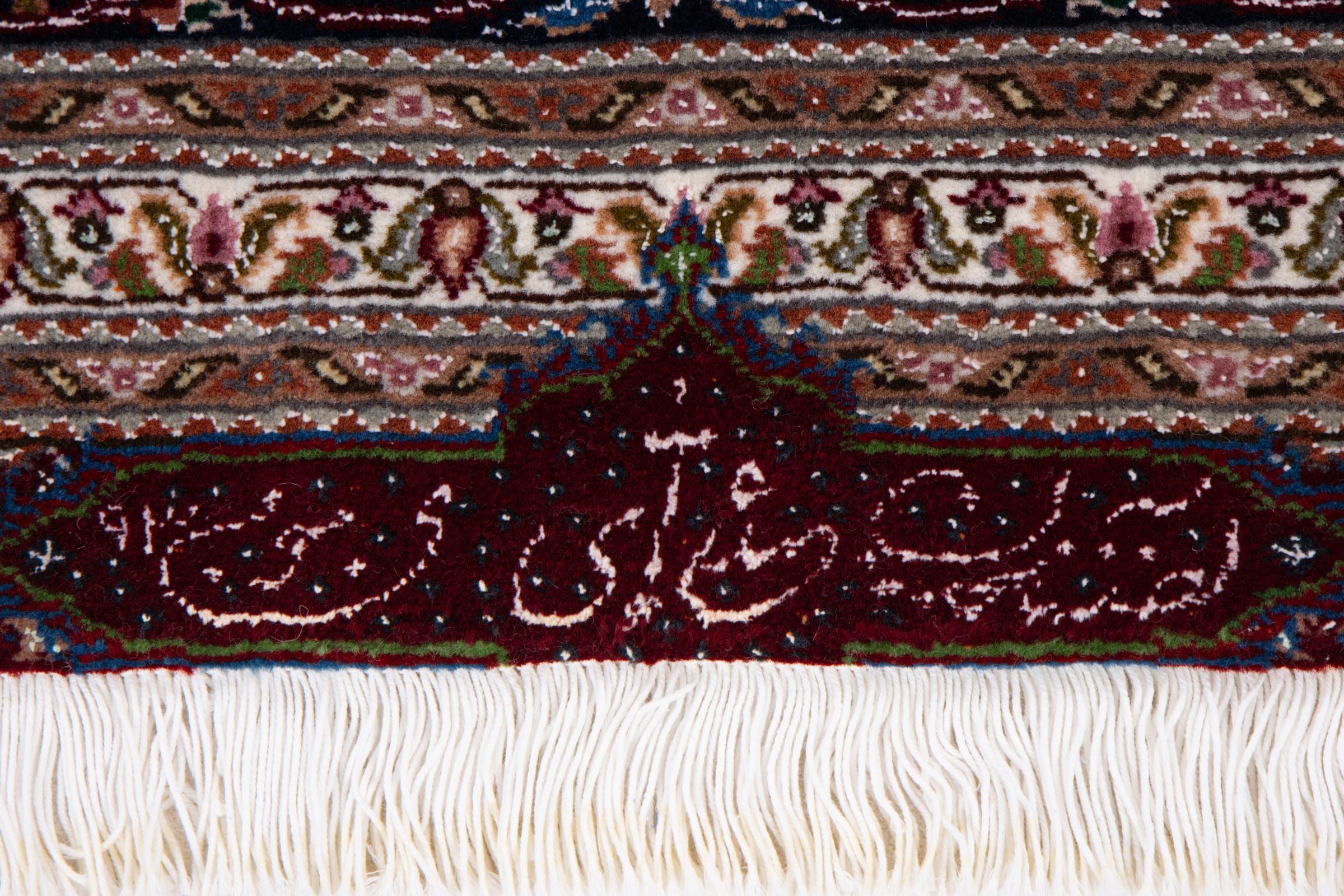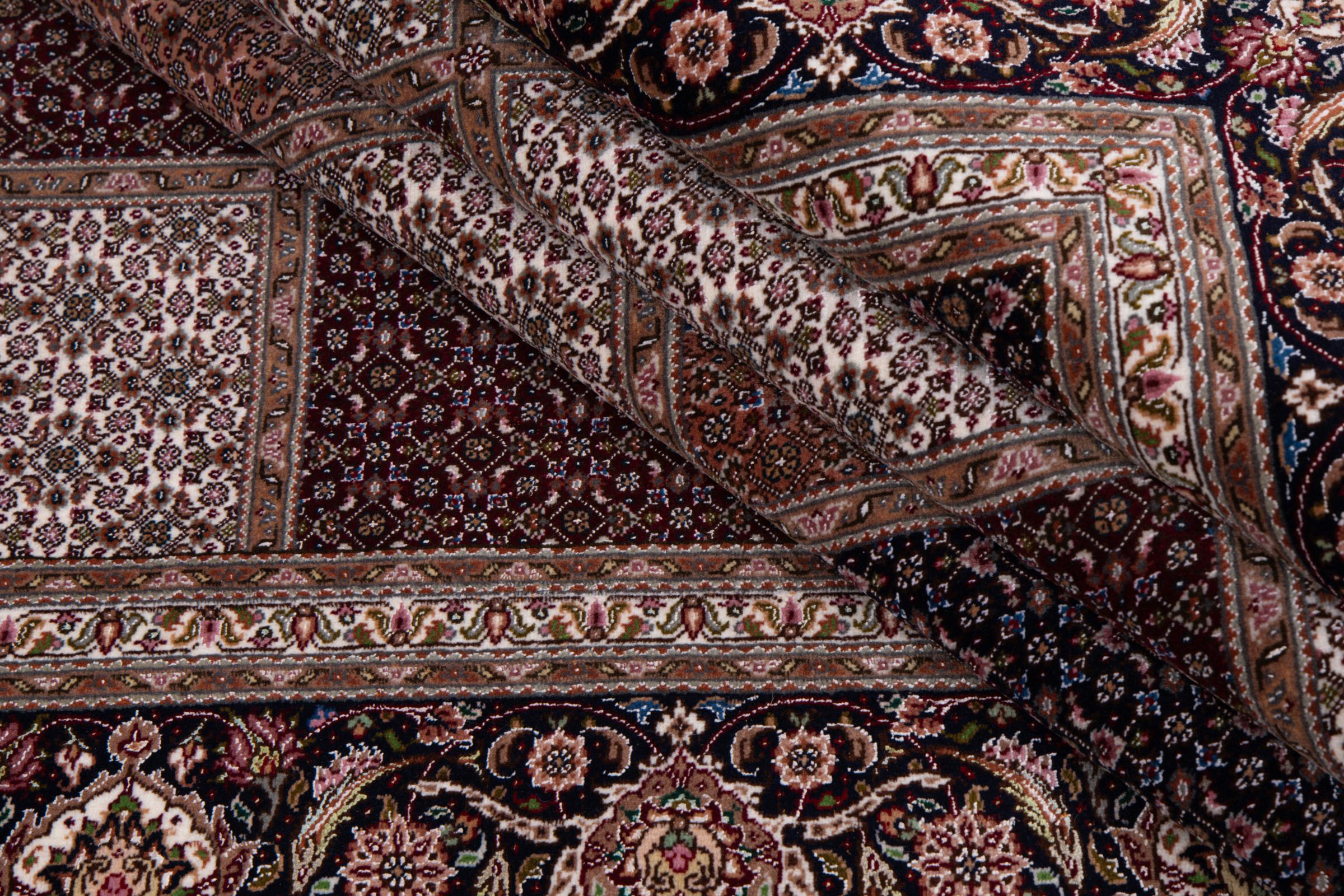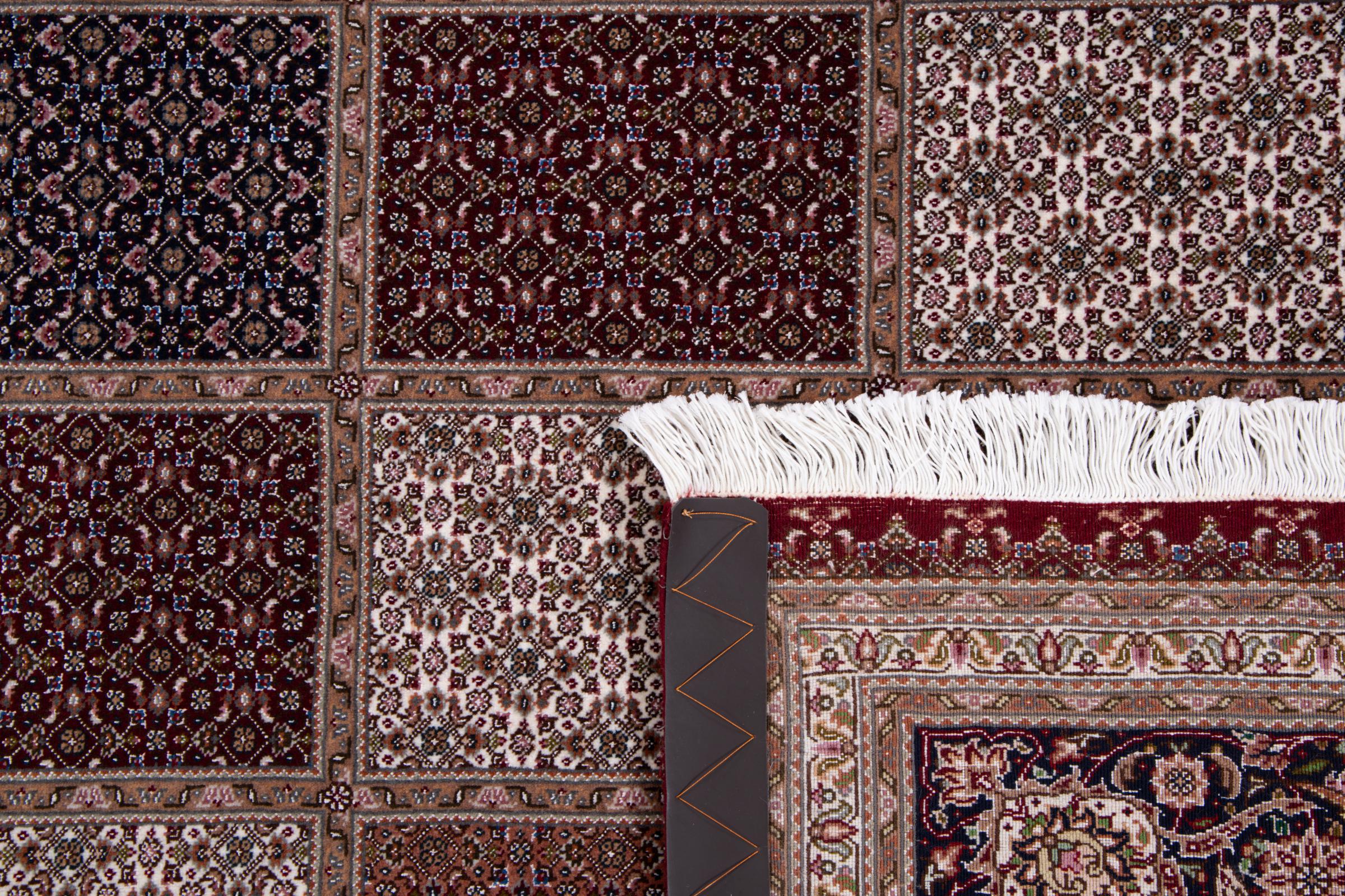 Dieser Täbriz wurde im Nordwesten des Iran, in der handwerklichen und gleichnamigen Stadt Tabriz handgeknüpft. Dabei wurde nur hochwertige Wolle und Naturseide verwendet. Er spiegelt mit seinen Mustern und dekorativen Elementen den Orient in seiner schönsten Form wieder. Lassen Sie ein Kunstwerk Einzug in Ihr Haus halten: Ein echtes Highlight für Sie und Ihre Gäste. Die Raj Anzahl gibt bei diesen Teppichen die Menge der Knoten auf einer Länge von 7cm wieder. So hat ein Täbriz 50Raj zum Beispiel grob 500.000 Knoten pro m2, ein 70Raj sogar ca. 1.000.000 Knoten pro m2.
