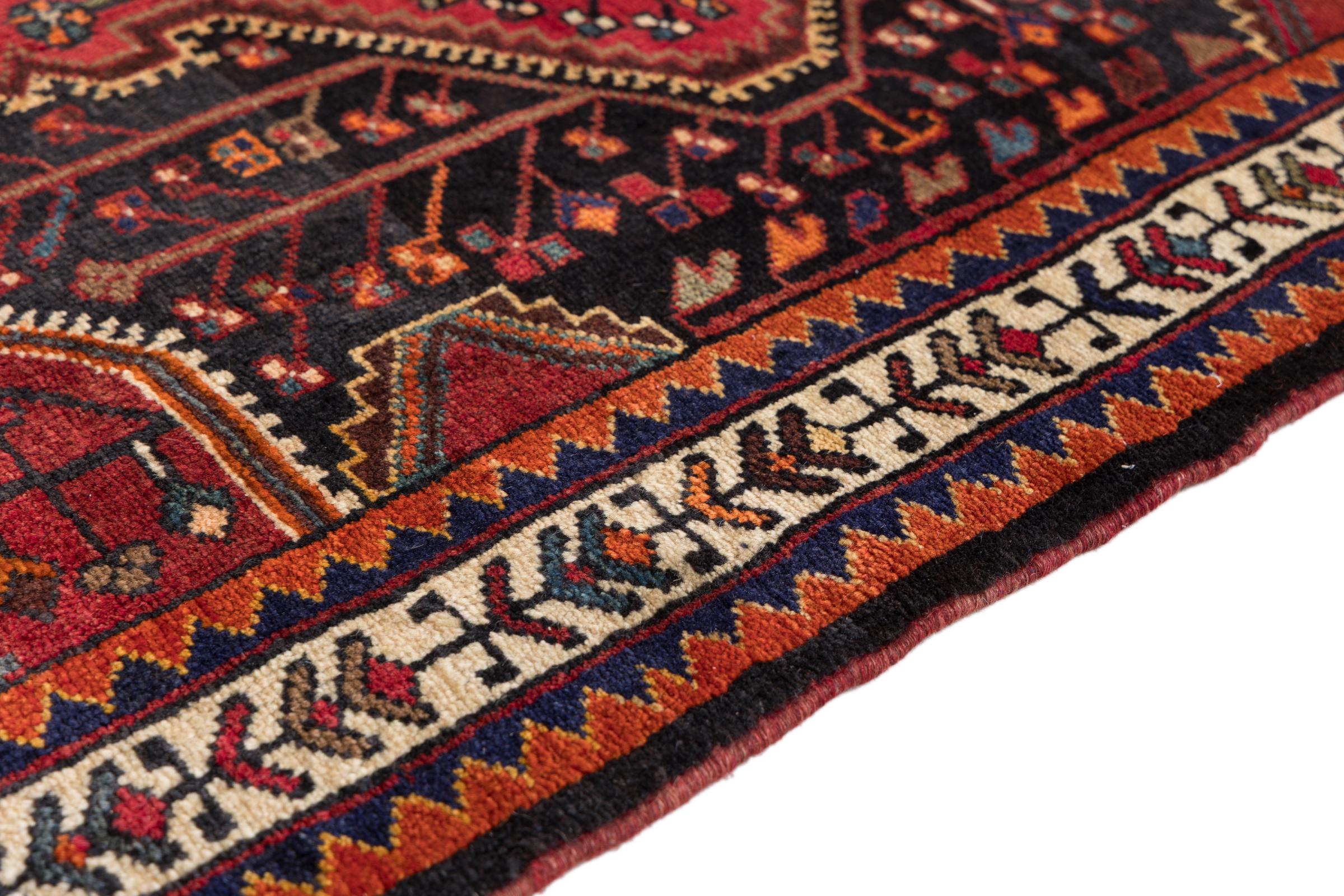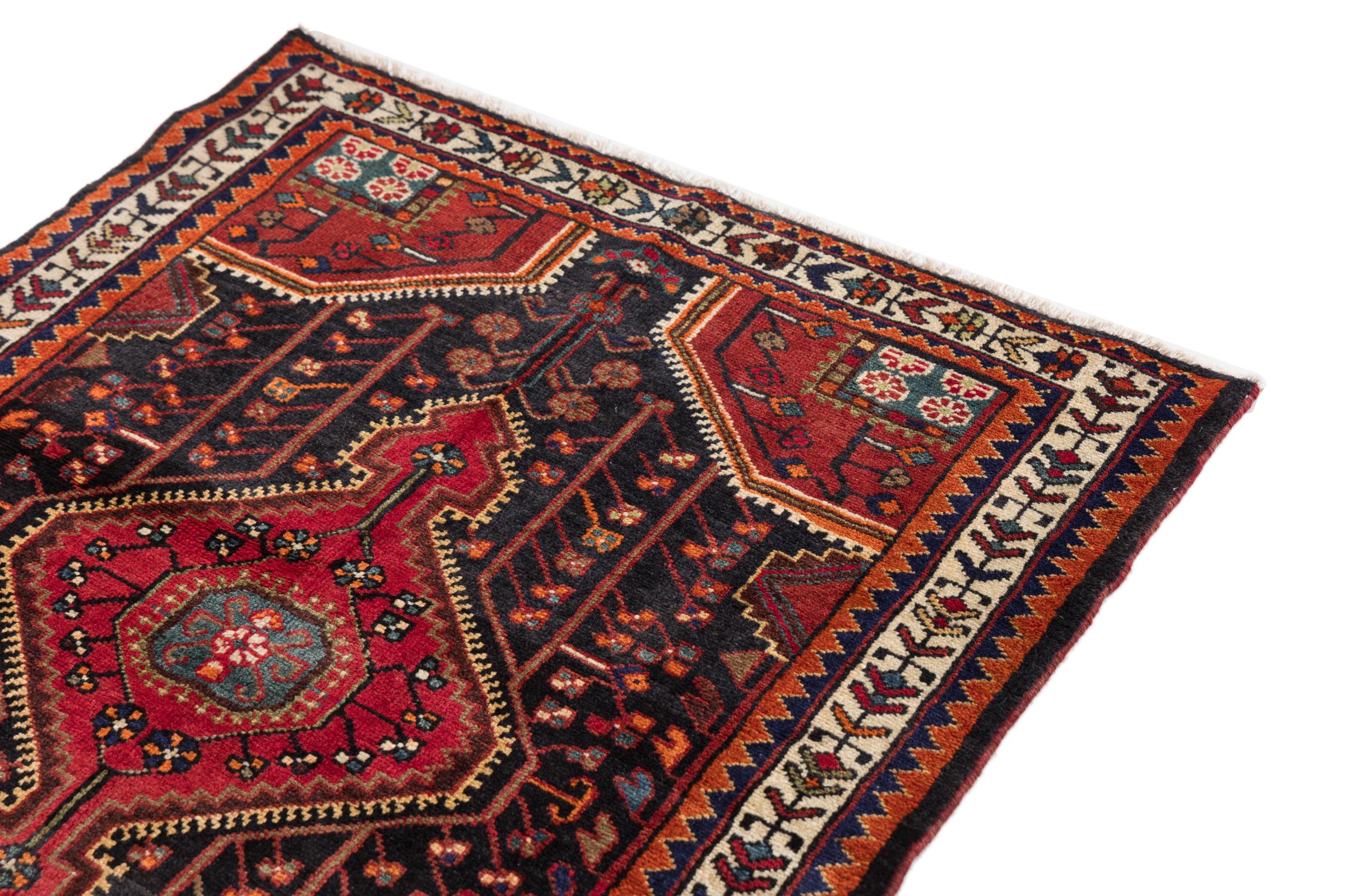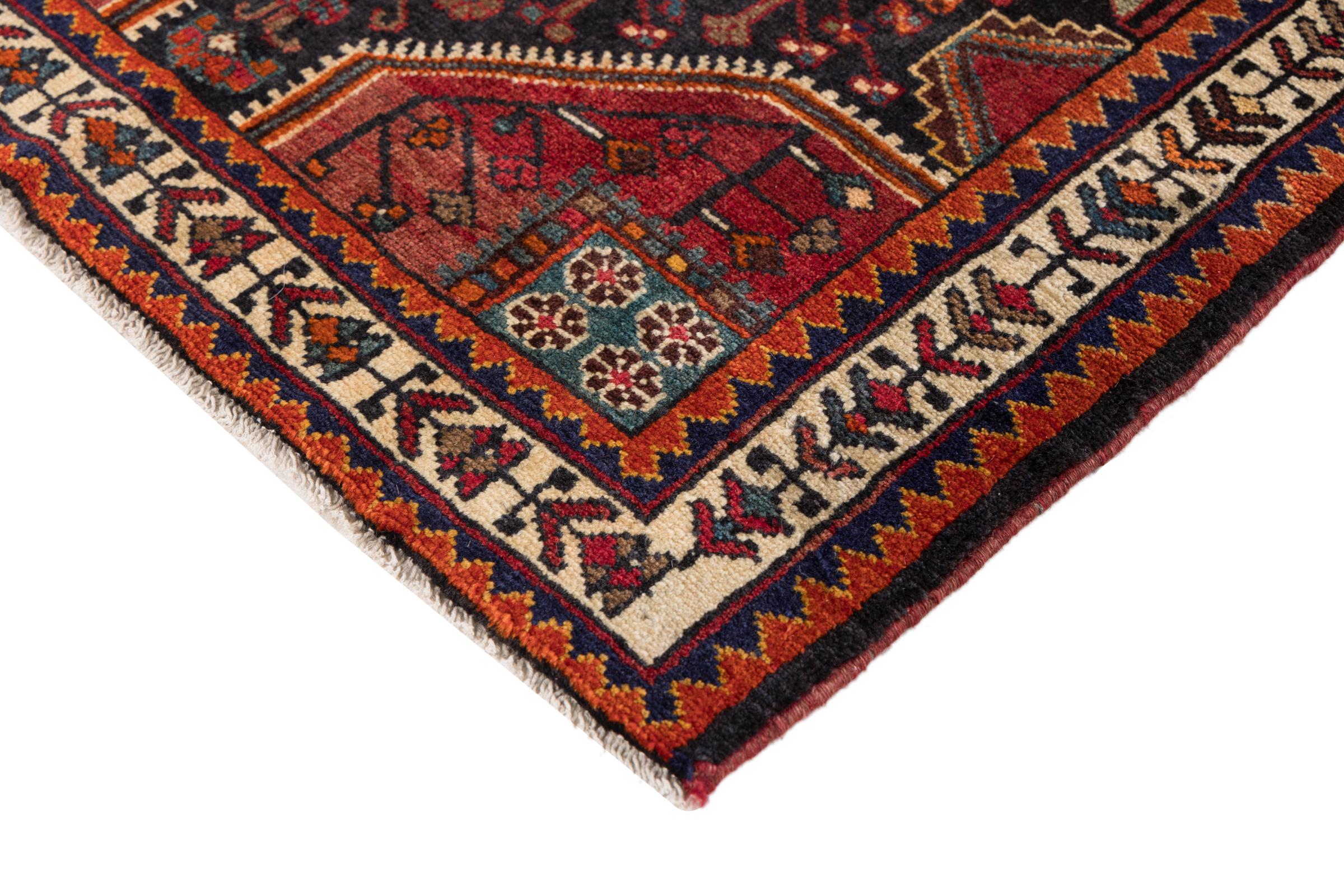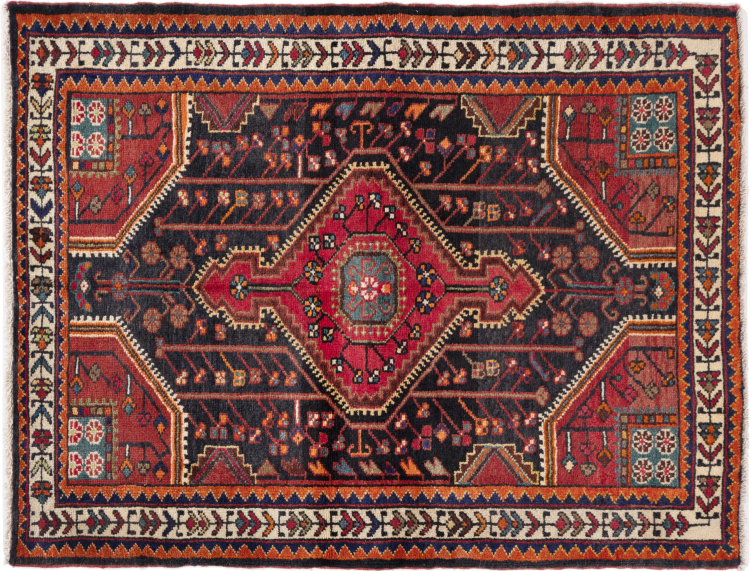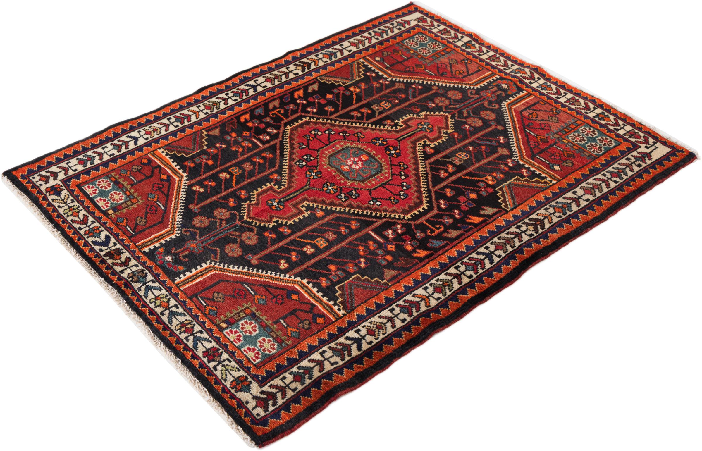 Dieser Teppich gehört zu Dorf- und Nomadenteppichen aus dem Iran, ehemals Persien. Diese Art von Teppich wird in kleineren Städten und Dörfern von Hand in alter Tradition geknüpft. Auch Nomaden knüpfen noch Perserteppiche unter freiem Himmel. Die Teppiche werden ohne Vorlage und komplett aus dem Kopf geknüpft. Sie sind gekennzeichnet durch klassische Ornamente, die in geradlinigen und geometrischen Mustern angelegt sind. Dank ihrer kulturell-traditionellen Herkunft, haben diese Teppiche einen einzigartigen Charakter, der das alte Persien verkörpert.