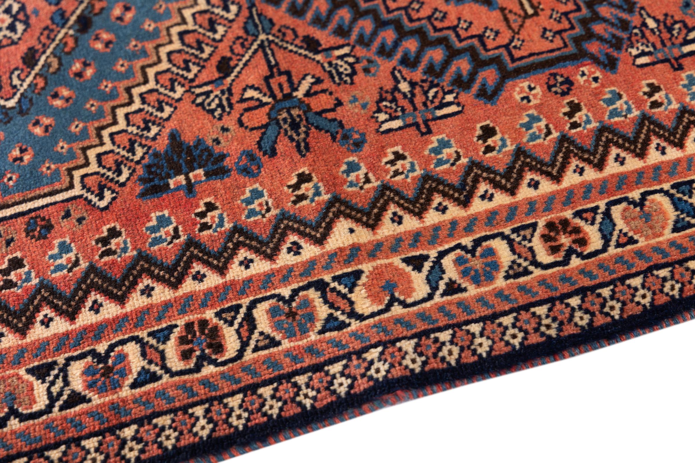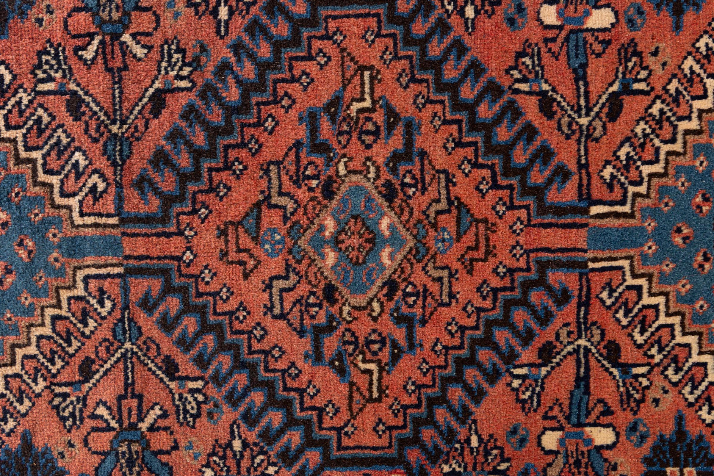 Dieser Teppich gehört zu Dorf- und Nomadenteppichen aus dem Iran, ehemals Persien. Diese Art von Teppich wird in kleineren Städten und Dörfern von Hand in alter Tradition geknüpft. Auch Nomaden knüpfen noch Perserteppiche unter freiem Himmel. Die Teppiche werden ohne Vorlage und komplett aus dem Kopf geknüpft. Sie sind gekennzeichnet durch klassische Ornamente, die in geradlinigen und geometrischen Mustern angelegt sind. Dank ihrer kulturell-traditionellen Herkunft, haben diese Teppiche einen einzigartigen Charakter, der das alte Persien verkörpert.