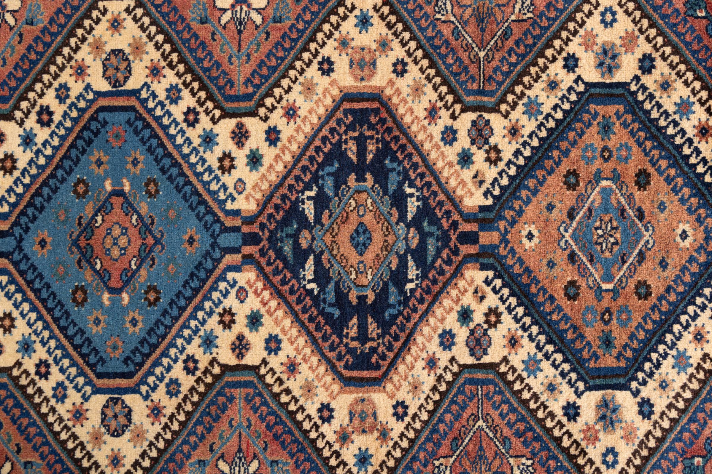 Traditionell von Hand in Yalameh gefertigt ist dieser Perserteppich ein schöner Vertreter seiner Zunft. Die geometrischen Formen sind zeitlos und werden auch noch in vielen Jahren ein sehr beliebtes Design darstellen. Besonders sind bei Yalameh die Rauten, wie bei diesem Teppich.