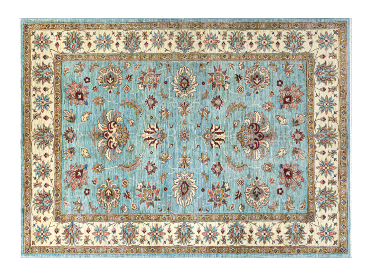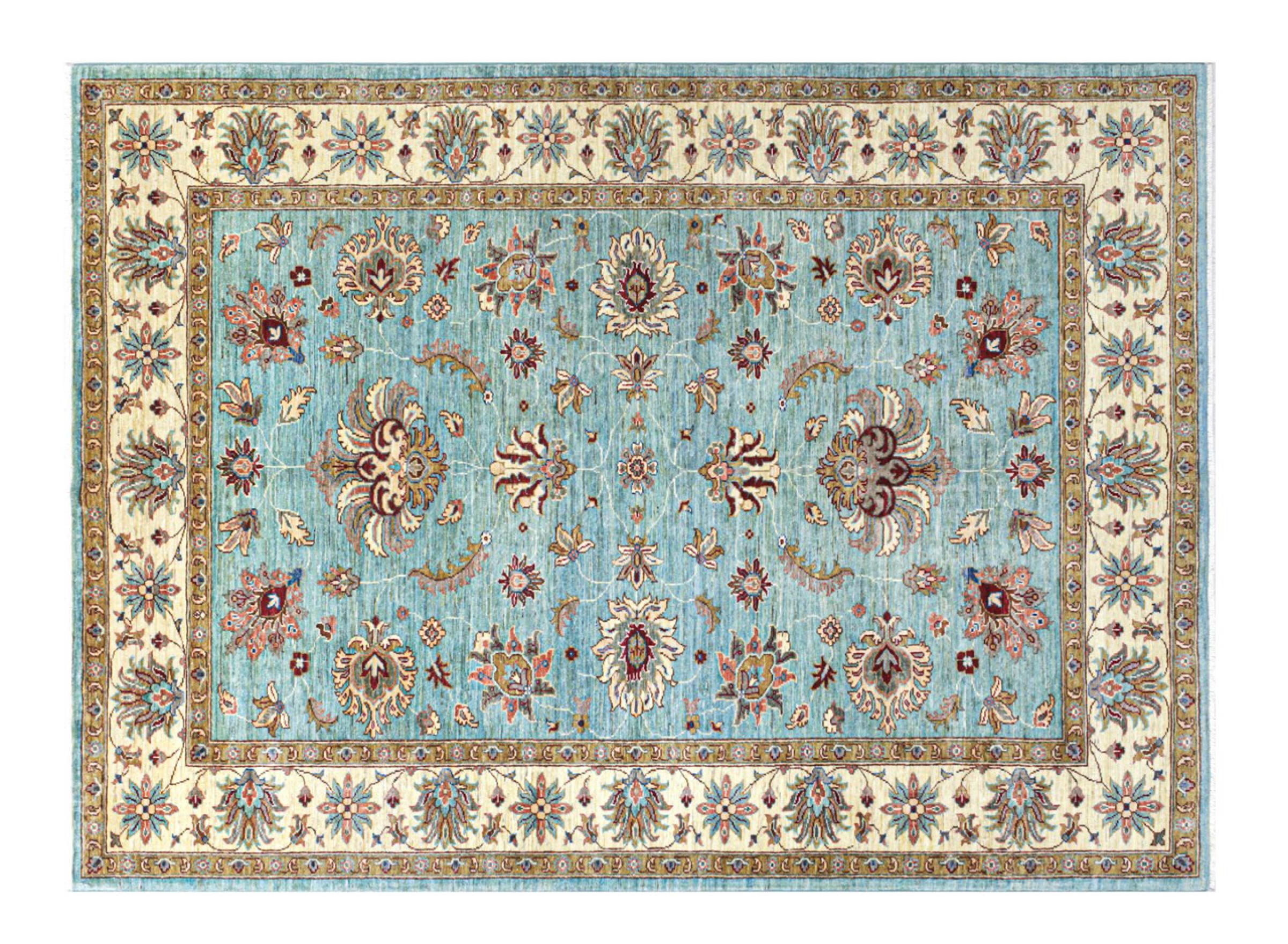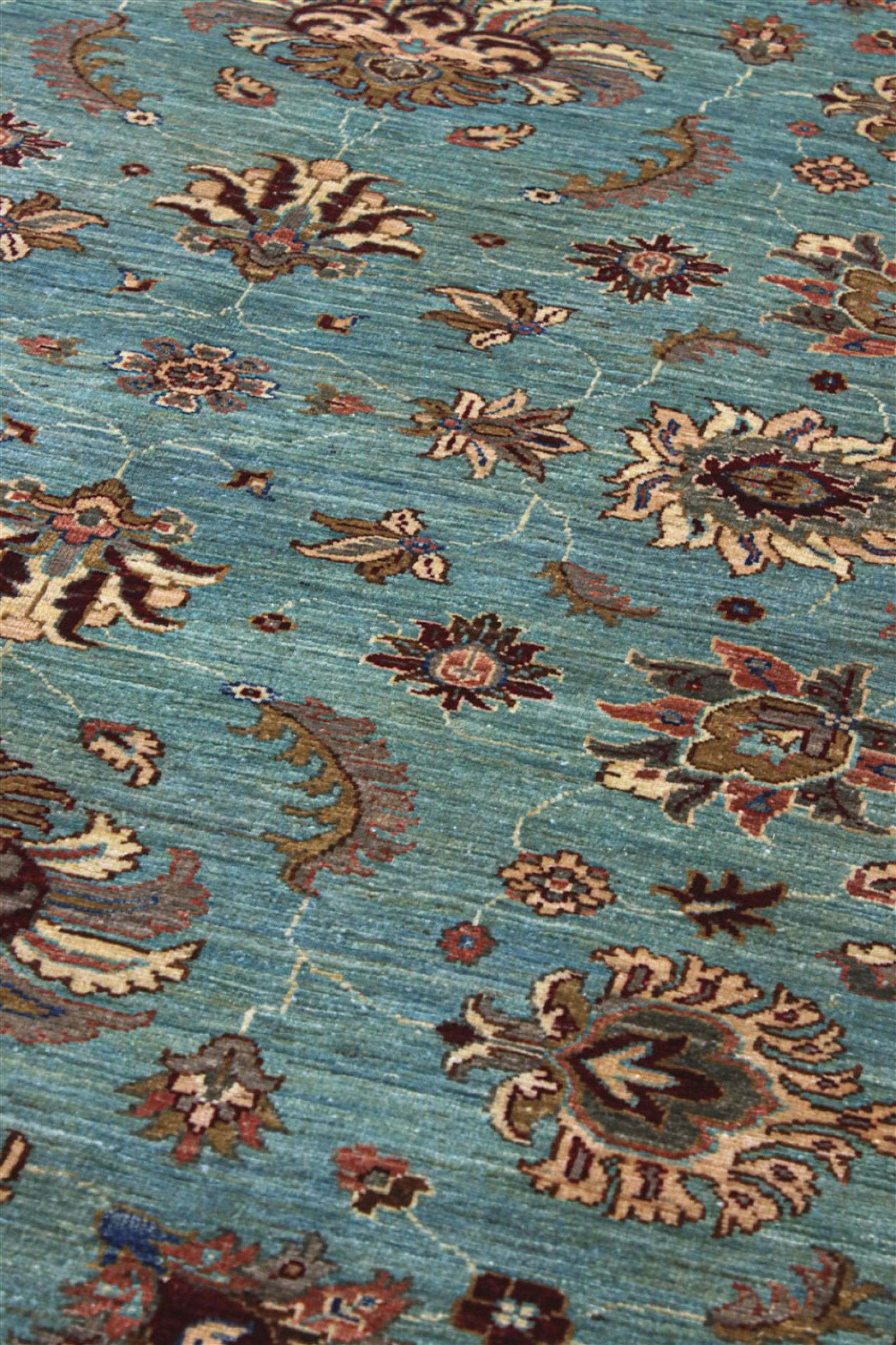 Dies ist ein wunderschöner klassischer Ziegler Teppich. Er wurde von Hand in Afghanistan geknüpft und besteht aus weicher handgesponnener Schafwolle. Florale Ornamente, lebhafte Farben und eine breite Bordüre zeichnen diese Teppiche aus. Oft bekommt der Flor zudem einen leicht ausgewaschenen Look, um einen antiken