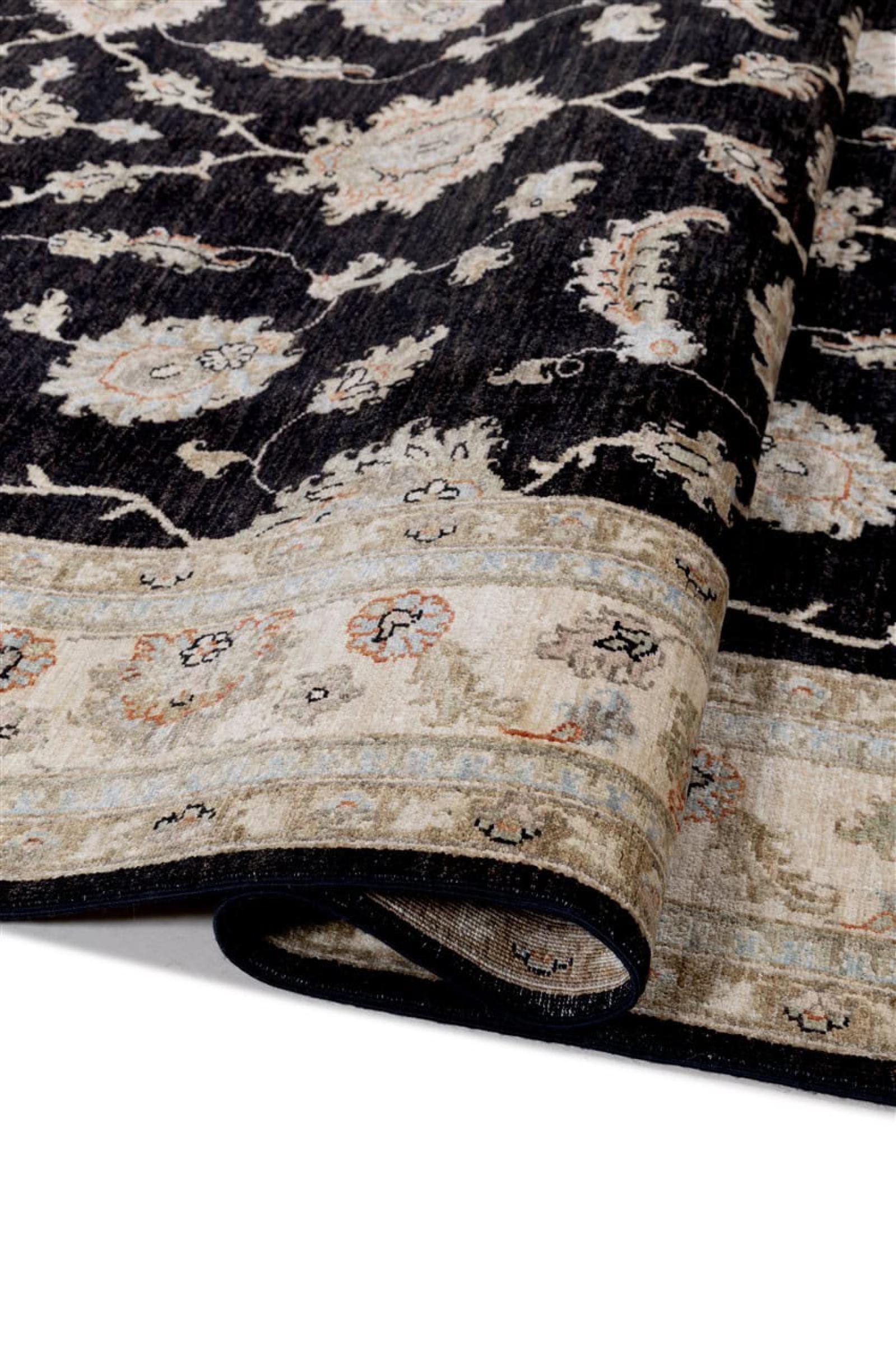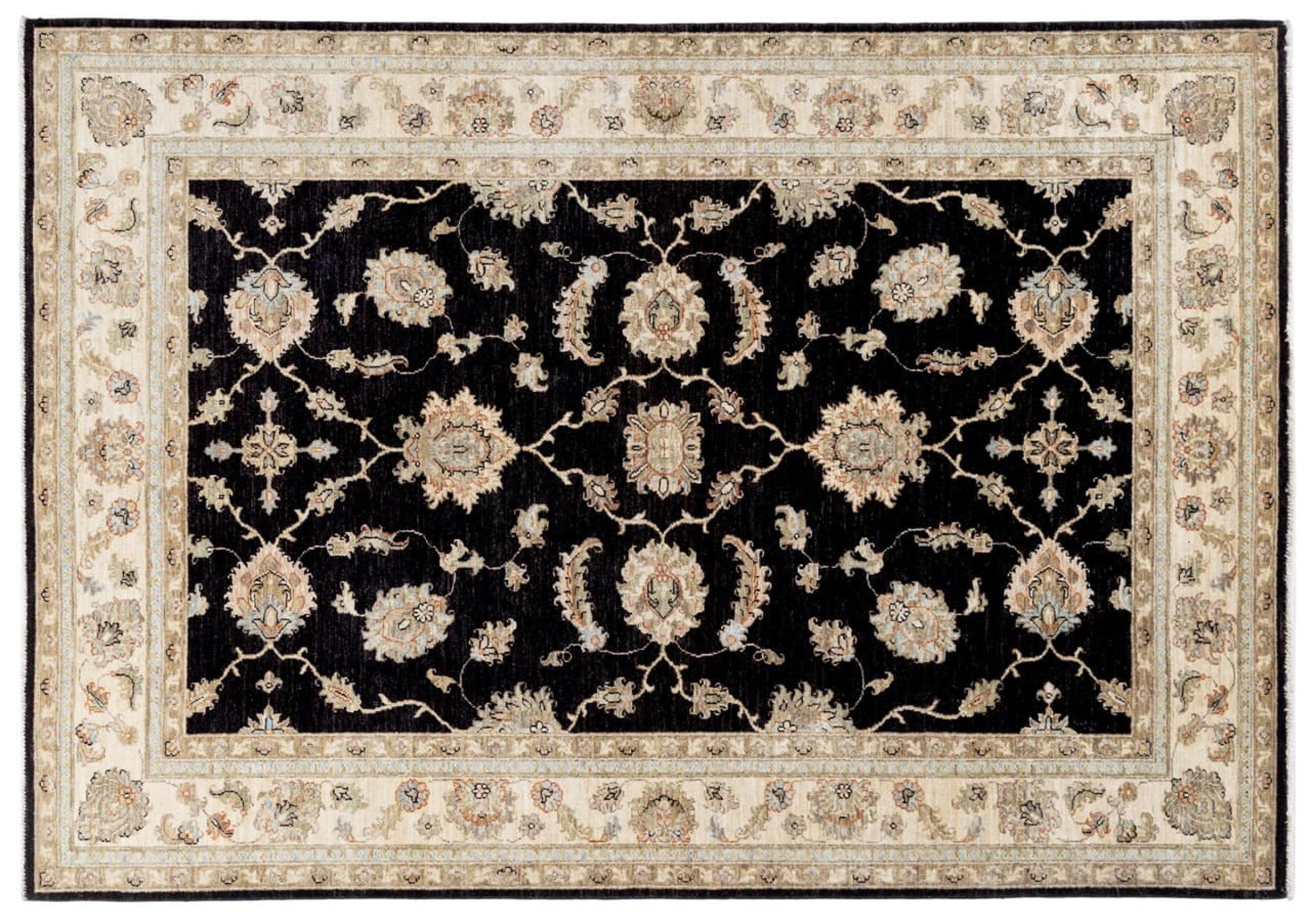 Dies ist ein wunderschöner klassischer Ziegler Teppich. Er wurde von Hand in Afghanistan geknüpft und besteht aus weicher handgesponnener Schafwolle. Florale Ornamente, lebhafte Farben und eine breite Bordüre zeichnen diese Teppiche aus. Oft bekommt der Flor zudem einen leicht ausgewaschenen Look, um einen antiken