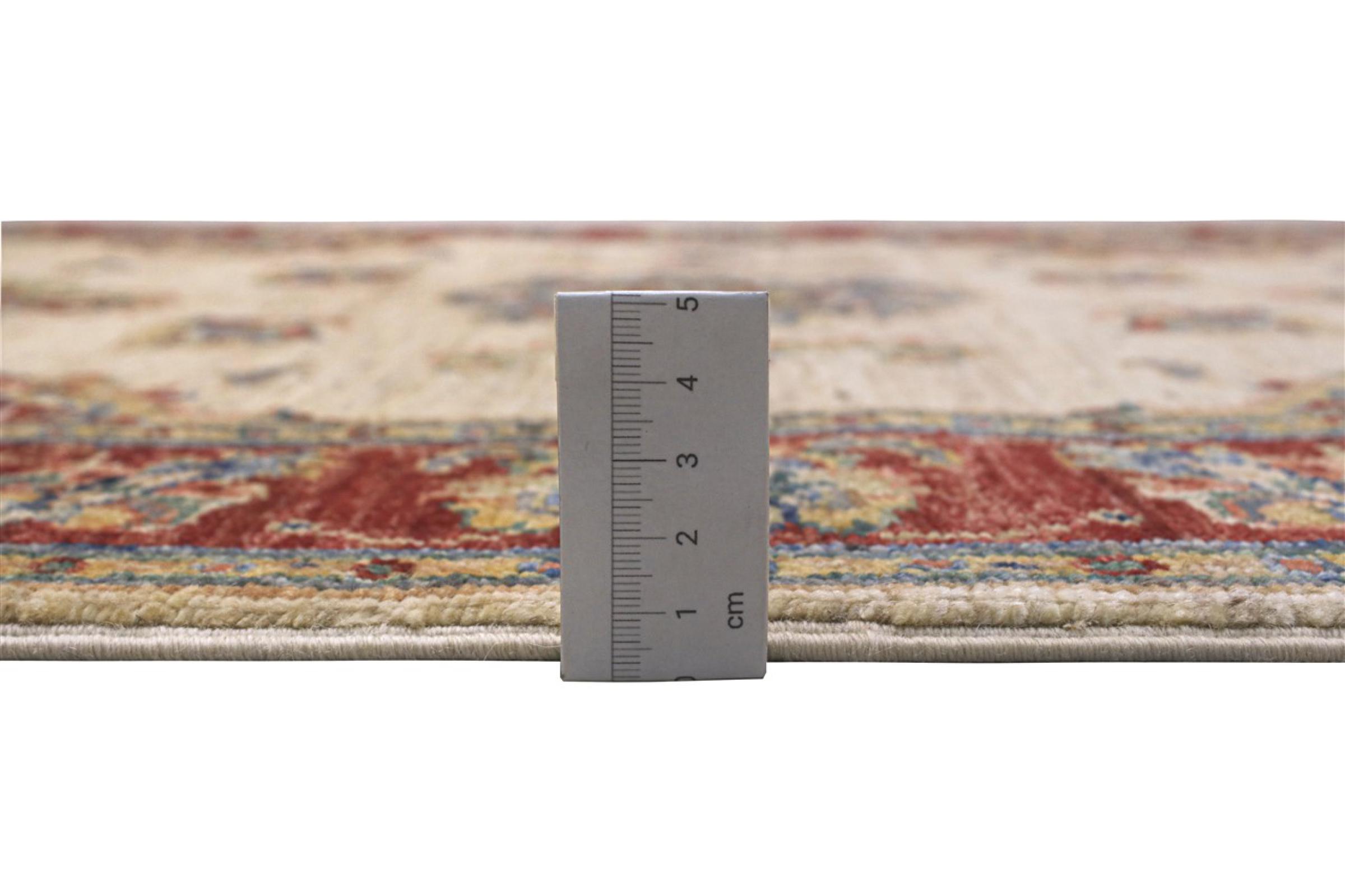 Dieser Teppich besteht aus von Hand gesponnener Schafwolle in höchster Qualitätsstufe. Vor allem im Iran (ehem. Persien), Afghanistan und Pakistan wird Wolle noch von Hand gesponnen, bevor die eigentliche Knüpfung des Teppichs beginnt. Wolle hat sich als natürliches und extrem strapazierfähiges Material über Jahrhunderte hinweg bewährt. Sie besitzt unter Anderem schmutzabweisende und wärmedämmende Eigenschaften. Zugleich ist Wolle unvergleichlich weich und bringt einen natürlichen Glanz mit sich.