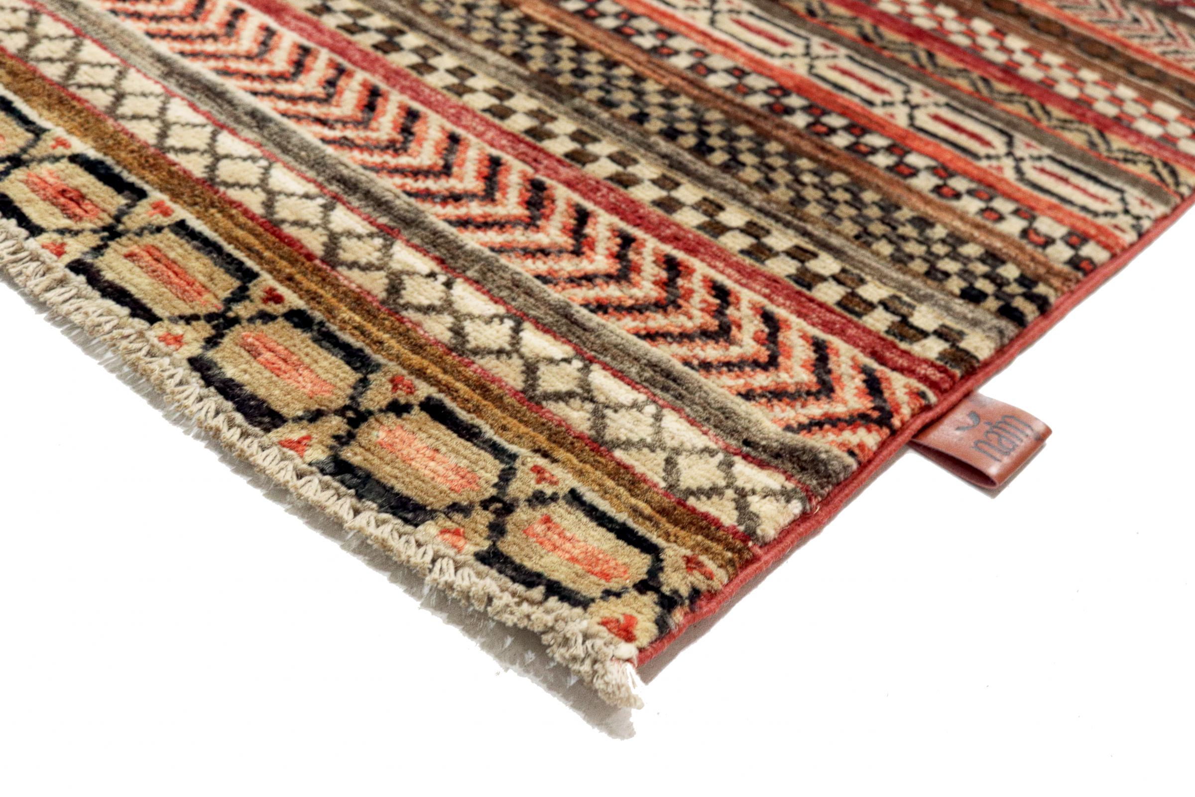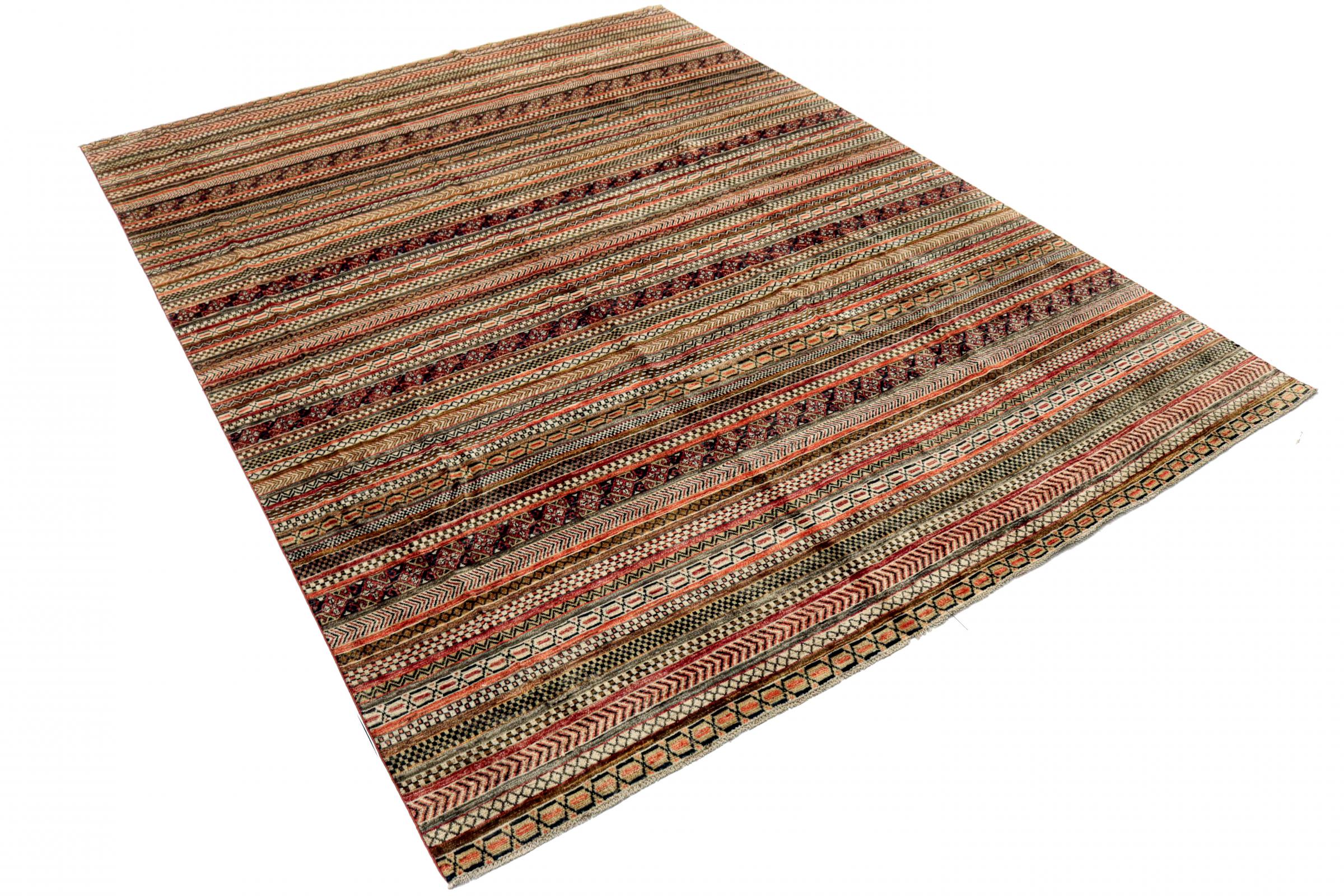 Dieser moderne Ziegler-Teppich wurde in neuen Farben und Mustern in Pakistan von Hand geknüpft. Das Design und die lebhaften Farben dieser Art von Teppichen überzeugt in modernen Einrichtungen. Anders als herkömmliche Ziegler Teppiche, greift dieser Teppich nicht die Ornamente von traditionellen Perserteppichen auf. Er besitzt ein einzigartiges Design kombiniert mit der hohen Qualität von natürlicher Schafwolle und traditionellem Kunsthandwerk.