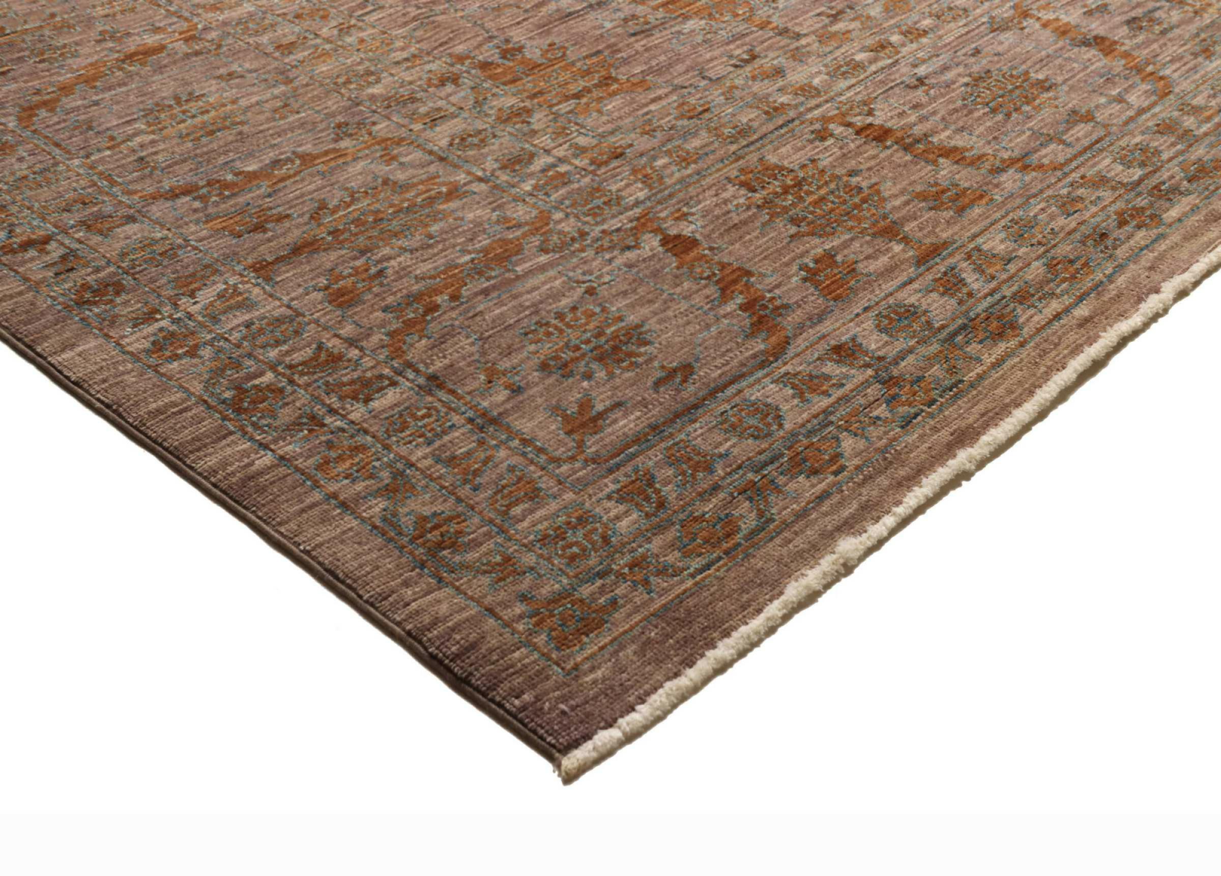Dieser Teppich besteht aus von Hand gesponnener Schafwolle in höchster Qualitätsstufe. Vor allem im Iran (ehem. Persien), Afghanistan und Pakistan wird Wolle noch von Hand gesponnen, bevor die eigentliche Knüpfung des Teppichs beginnt. Wolle hat sich als natürliches und extrem strapazierfähiges Material über Jahrhunderte hinweg bewährt. Sie besitzt unter Anderem schmutzabweisende und wärmedämmende Eigenschaften. Zugleich ist Wolle unvergleichlich weich und bringt einen natürlichen Glanz mit sich.